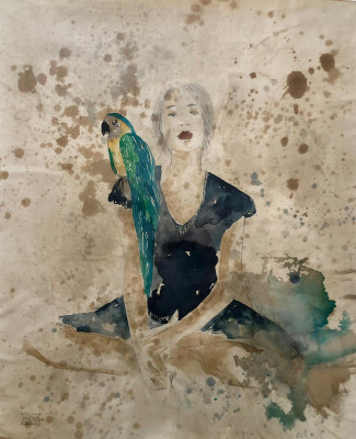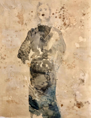 Nelle sue grandi tele, esposte senza telai come fossero grandi arazzi, Valeria Patrizi cerca l'equilibrio della forma attraverso linee e macchie, utilizzando caffè, thè e bitume. In costante ricerca di una nuova e simbolica idea della figura umana si sofferma sull'immagine della donna; la sola in cui può perdersi e ritrovarsi.