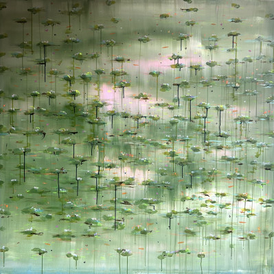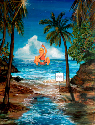 La tecnica distintiva di Veronica è la pittura a tripla scena, sviluppata durante una residenza presso il Château Orquevaux nel 2020, impiega luce naturale, luce ultravioletta (UV) e materiali fosforescenti per rivelare tre livelli distinti ma interconnessi di significato all’interno di ogni opera. Attraverso questo processo, Green attraversa con eleganza il visibile e l’invisibile, guidando gli spettatori attraverso mondi di presentazione esterna, rivelazione subconscia e introspezione trascendentale. Le sue opere non sono semplici dipinti, ma portali esperienziali che richiedono al pubblico di adottare modalità percettive mutevoli, confrontandosi così con i molteplici strati della propria identità. La pratica di Green è profondamente radicata nella narrazione personale, pur mantenendo un dialogo costante con questioni sociali, ambientali e filosofiche più ampie. I suoi primi lavori, influenzati dall’iconografia religiosa, dalla mitologia e dai paesaggi architettonici onirici, si sono evoluti fino a includere temi legati al genere, alla sessualità, alla razza e alle complesse negoziazioni dell’eredità culturale. Questa evoluzione si riflette anche nelle sue trasformazioni formali, dal collage ai materiali fosforescenti, fino alla complessità delle sue composizioni a tripla scena. Il lavoro di Green non parla solo al regno dell’estetica, ma anche ai paesaggi emotivi, psicologici e sociali che sottendono l’esistenza contemporanea. Le sue opere sfidano ed espandono i confini della pittura, offrendo momenti di leggerezza, romanticismo e introspezione in un mondo sempre più definito dalle sue complessità. Il suo contributo all’arte contemporanea è di profonda risonanza, creando spazi in cui lo spettatore è invitato a riscoprire il proprio bambino interiore e, forse, anche solo per un momento, a vedere il mondo – e sé stesso – con occhi nuovi.