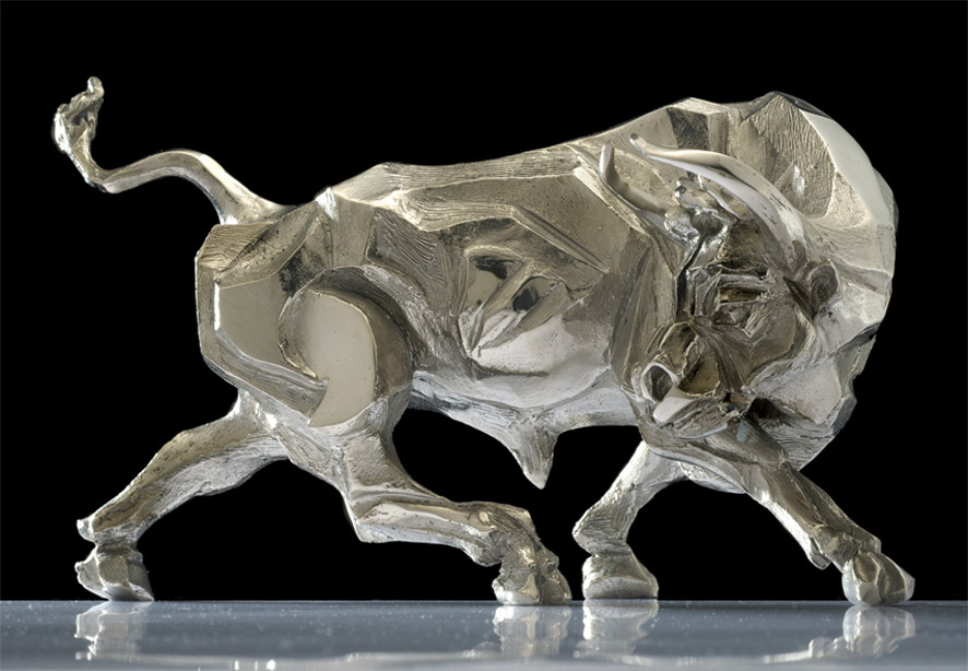 Sabrina Ferrari’s *Bull Bianco* is a sculpture that captures the essence of strength and nobility through a stylised representation of a bull. The smooth, polished surface, in immaculate white, enhances the animal’s purity and majesty, lending it an almost ethereal appearance. The powerful stance and the softness of the lines, sculpted with a refined technique, convey a sense of restrained energy and power ready to explode, sublimated into a form of extraordinary elegance.