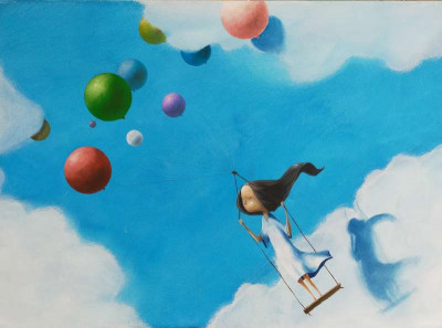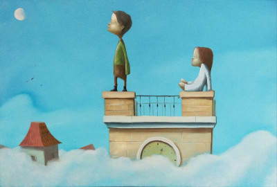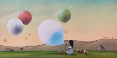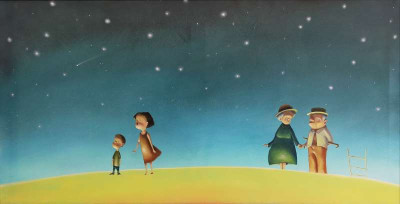 Nelle opere uniche e nelle fine art ritoccate a mano dall'artista, i protagonisti sono immersi in paesaggi suggestivi, resi attraverso evocative sfumature di colore. Le illustrazioni di Santini richiamano il mondo delle fiabe e, più in generale, le libere associazioni dell'infanzia, quando ogni oggetto può essere associato a storie straordinarie.
