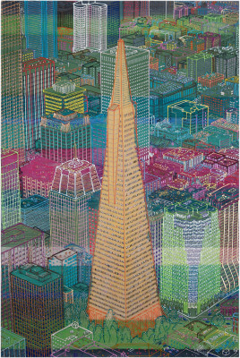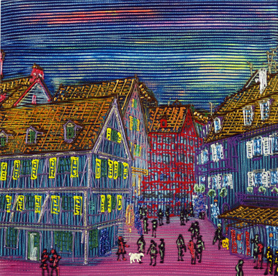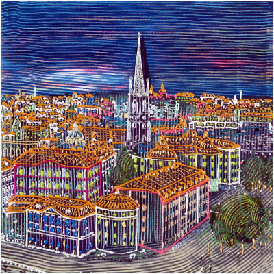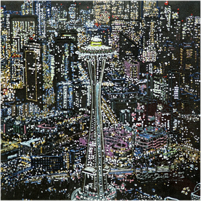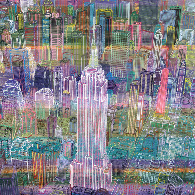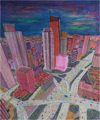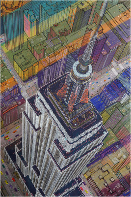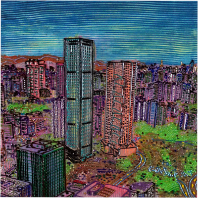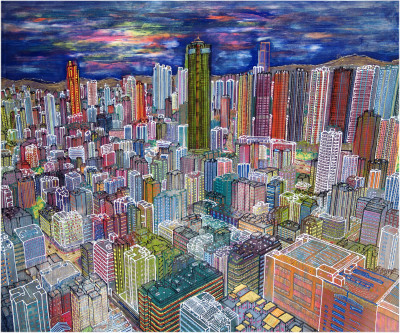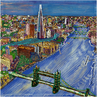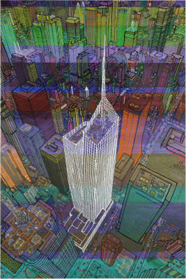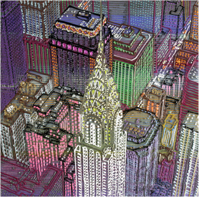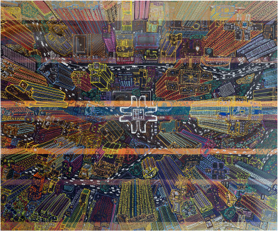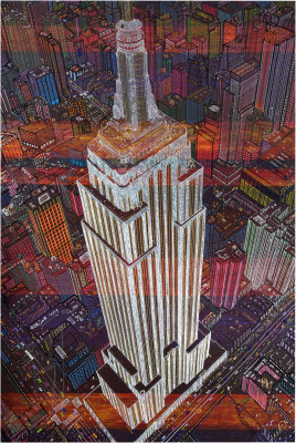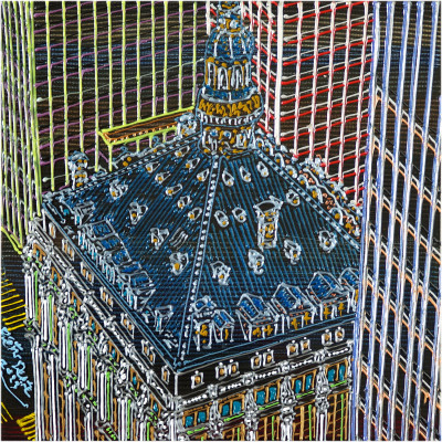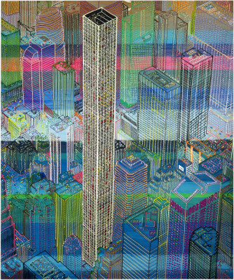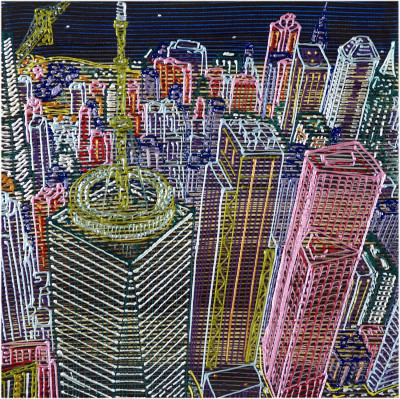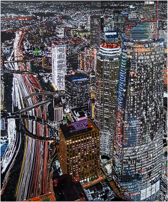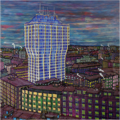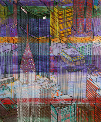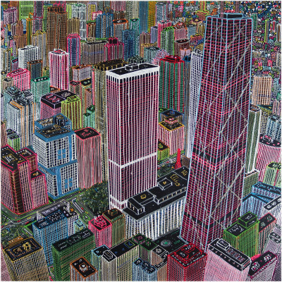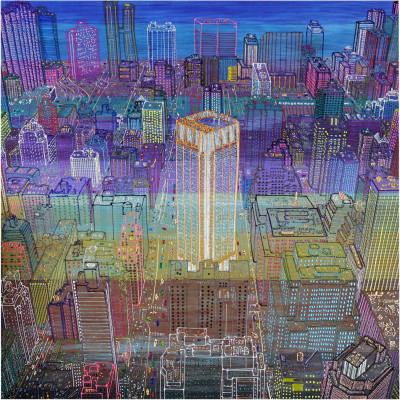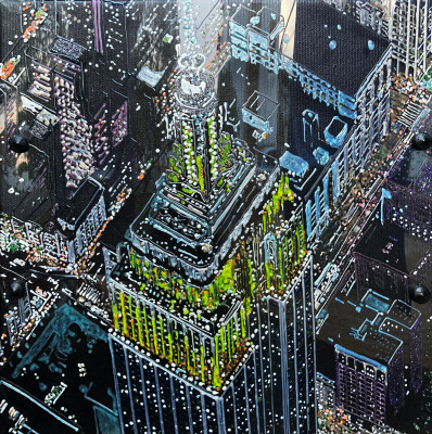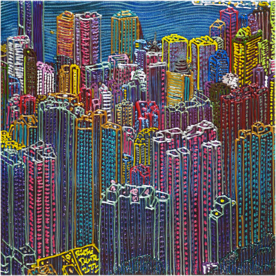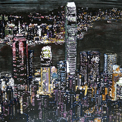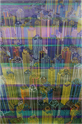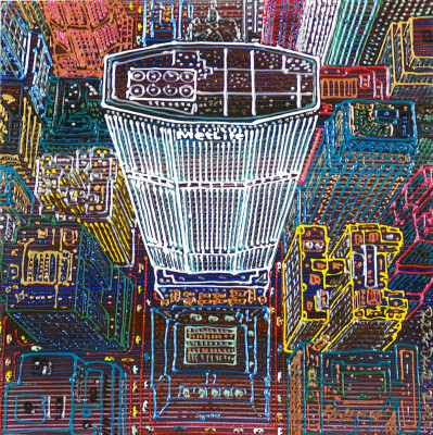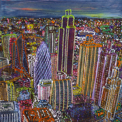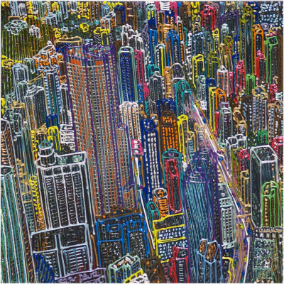 Inizia quindi a comporre opere su 2 livelli: il primo è costituito da una lastra di policarbonato dipinta con colori a rilievo raffigurante scorci più o meno colorati di grandi metropoli, il secondo è costituito dalla tela sottostante dipinta con acrilici stratificati e trattati secondo particolari metodi. Le 2 superfici unendosi creano un’unica composizione ove i livelli si fondono creando nuove soluzioni percettive. Inoltre la lastra è posta in modo da creare un effetto ondulato che fuoriesce dal quadro donandogli la terza dimensione; ciò avvicina maggiormente l’osservatore all’opera (che cerca di guadagnare maggior spazio nel “mondo reale”) e crea nel contempo effetti di ombre e riflessi che mutano col movimento di chi osserva.