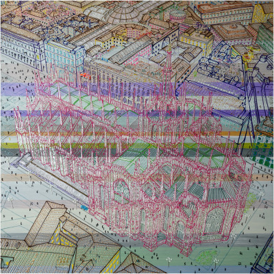 Pietro Dente's works seek three-dimensionality through the superimposition of a sheet of polycarbonate worked in relief and a canvas painted using several layers of acrylic paint. The end result is a dreamy vision that brings the observer closer to the work and, at the same time, creates a play of shadows and reflections that change with the observer's movement.