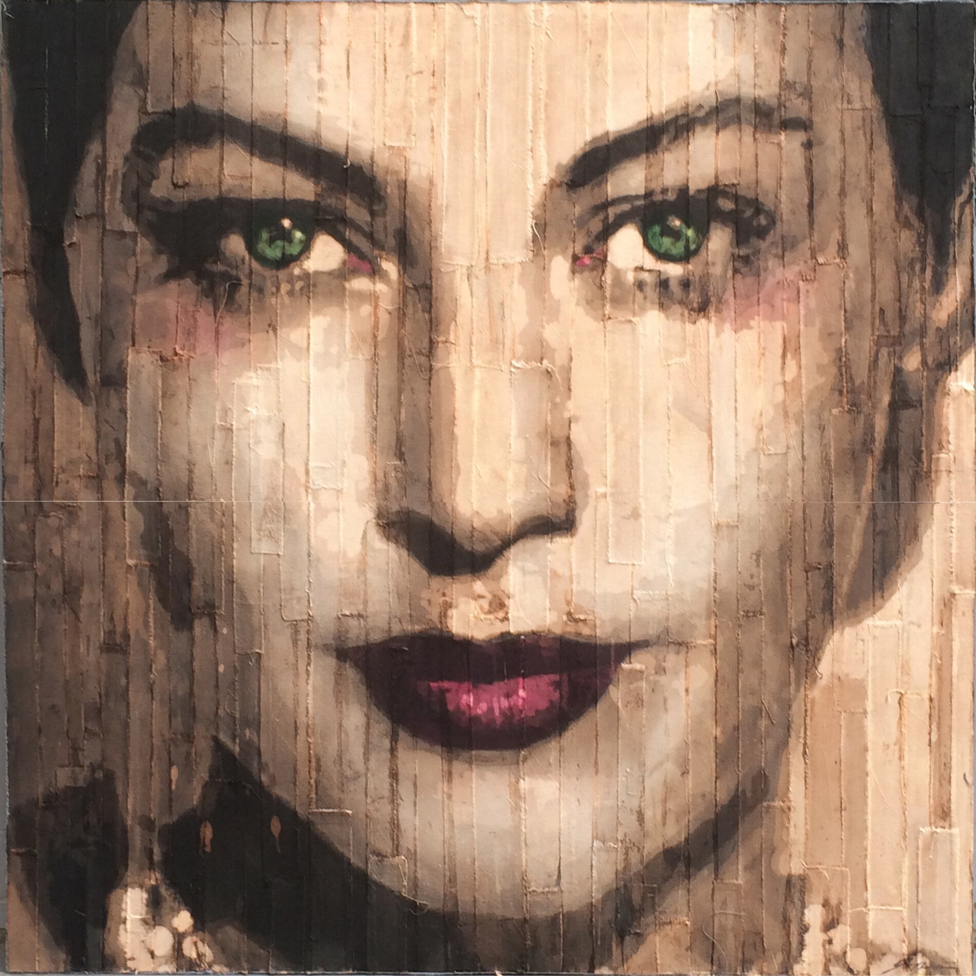 Con "Ava" l'artista italiano Gian Piero Gasparini esplora la figura femminile attraverso una composizione frammentata che unisce elementi di realismo e astrazione. La tecnica a mosaico permette una lettura complessa del volto, rivelando strati di significato e emozione. La paletta prevalente è nei toni del seppia e sembra parlare allo spettatore attraverso un ritratto fotografico di altri tempi ravvivato da alcuni intensi tocchi di colore che mettono in risalto gli occhi e la bocca della sensuale protagonista, l'attrice Ava Gardner.