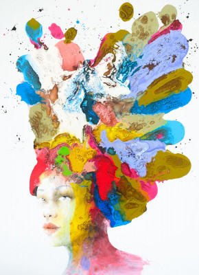 Nelle opere di Alessandro Casetti è il colore a dettare il ritmo: l’artista lascia che le colature esplodano sulla tela, si sovrappongano, si addensino e si contraddicano, creando un territorio emotivo vivo e imprevedibile. Solo dopo, dentro questo caos controllato viene dipinto il volto: non come punto di partenza, ma come qualcosa che prende forma a poco a poco, trovando il suo spazio nella materia.