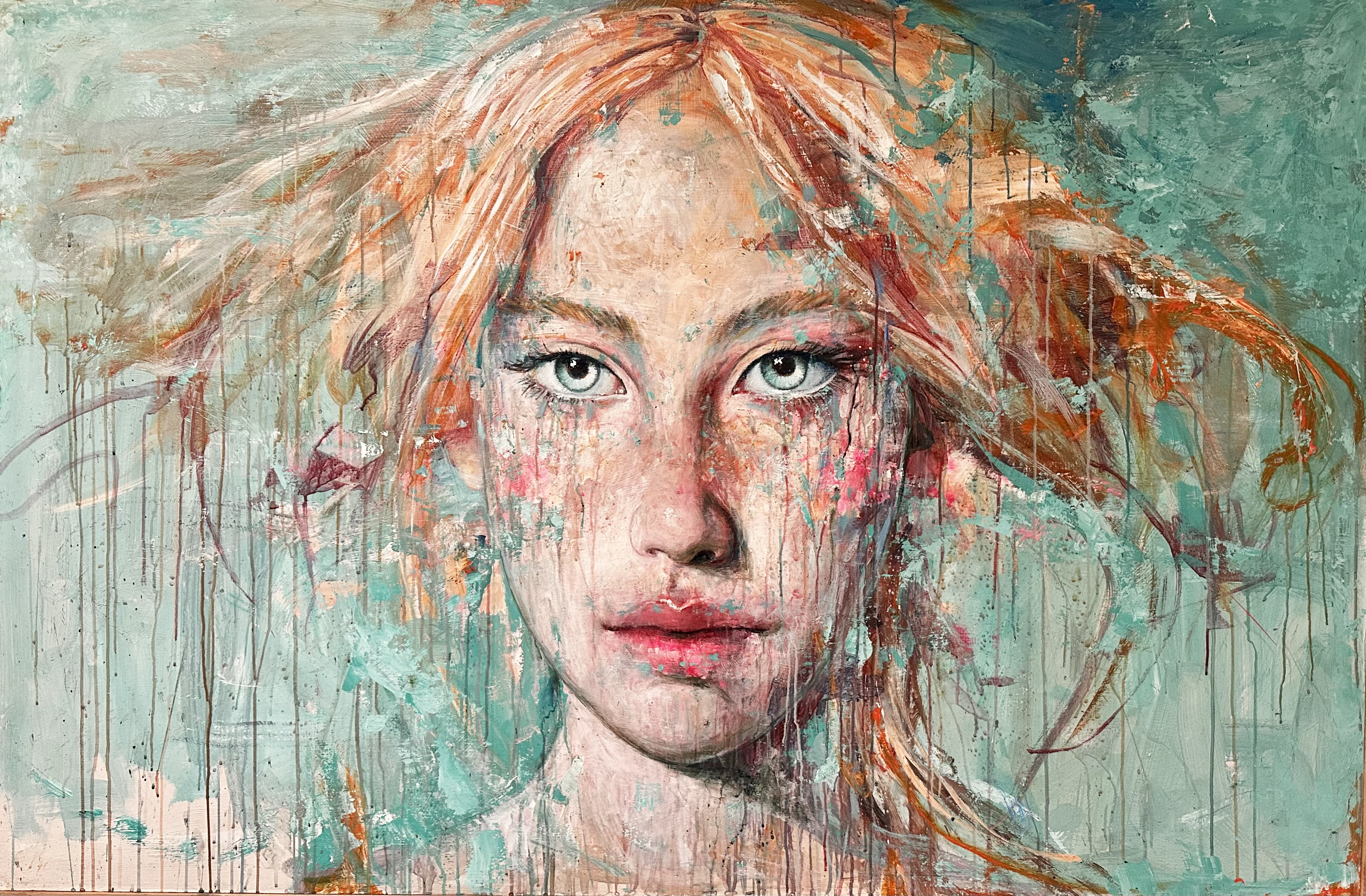 La ricerca dell’artista nasce da un processo interiore fatto di sogni e suggestioni, tradotto in una tecnica pittorica personale e riconoscibile. Iorizzo costruisce l’immagine attraverso sovrapposizioni, colature e interventi a spatola, alternando controllo e gesto, precisione e abbandono. La materia pittorica viene lavorata, rimossa e lasciata colare, fino a far affiorare il volto come un’apparizione magnetica.