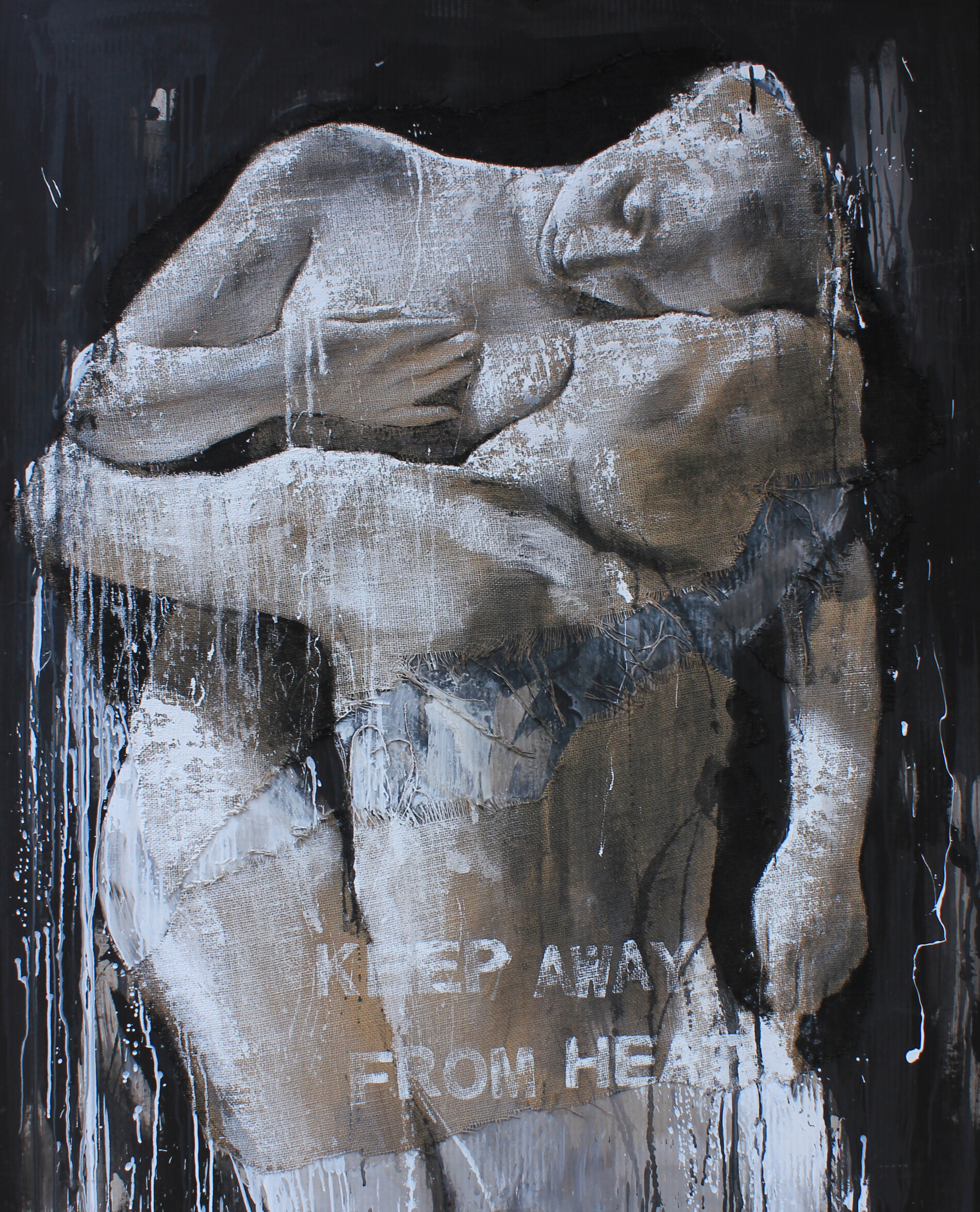 "L'abbraccio" di Max Gasparini è un'opera che cattura l'essenza del contatto umano e del legame emotivo. Le figure ritratte in un abbraccio sembrano esprimere la protezione e il sostegno reciproco. La composizione, creata con materiali come tavola, juta e cartone, arricchisce la superficie con una profondità sensoriale che trasmette l'emozione del contatto fisico. Il contrasto tra il bianco e nero con i toni caldi dei materiali naturali sottolinea il tema della connessione e della vulnerabilità.