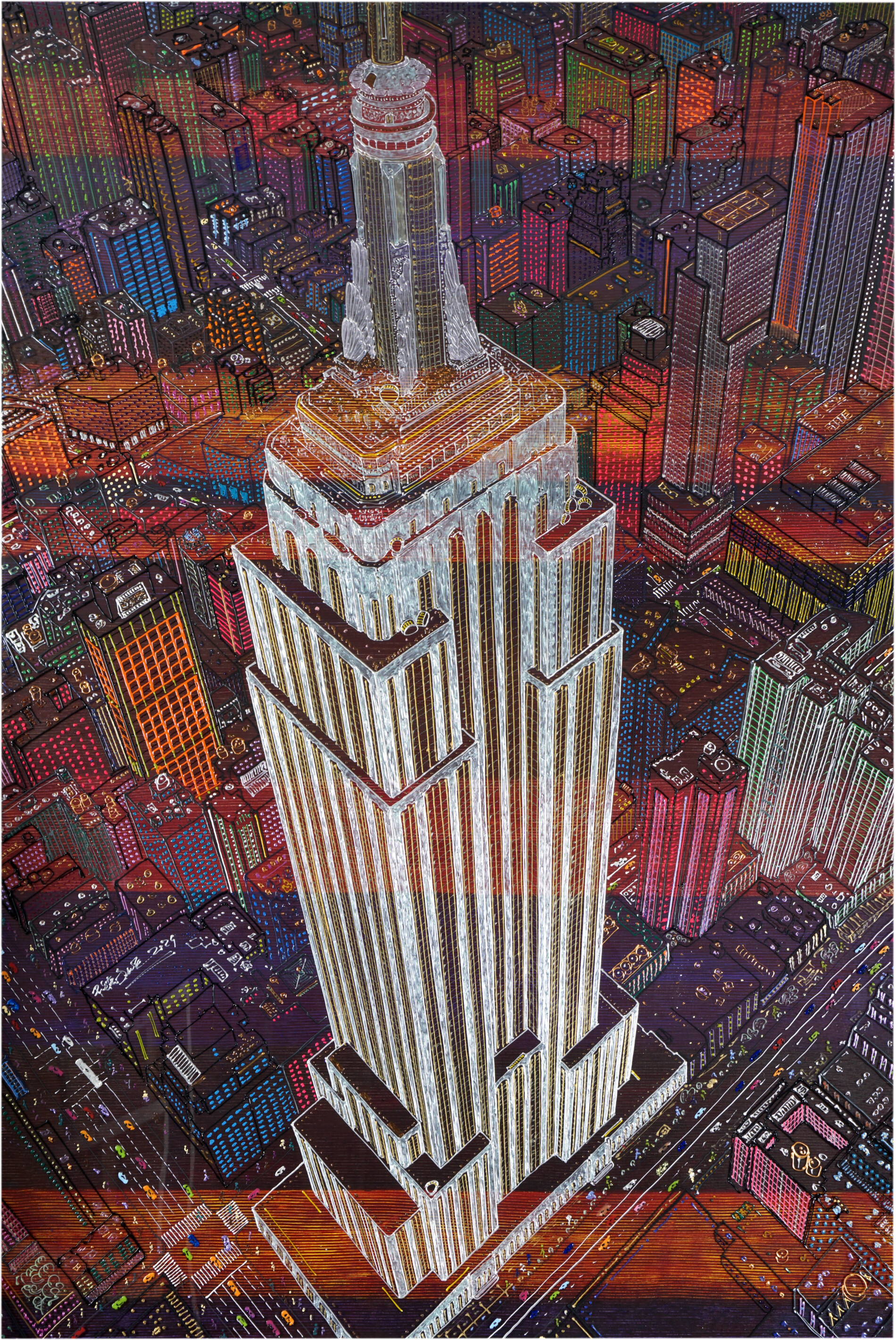 L'arte di Pietro Dente esplora l'intensa connessione tra l'individuo e l'ambiente urbano. Le sue opere evocano un senso di movimento e vitalità, trasmettendo l'emozione e l'energia pulsante delle città. Attraverso scenari ricchi di dettagli, l'artista invita lo spettatore a immergersi in esperienze che riflettono la frenesia della vita quotidiana. Le composizioni, cariche di colore e dinamismo, evocano sentimenti di meraviglia e introspezione, creando un dialogo profondo tra l'osservatore e il contesto urbano. Dente riesce così a rendere visibile l'anima di un luogo, trasformando l'ordinario in qualcosa di straordinario.