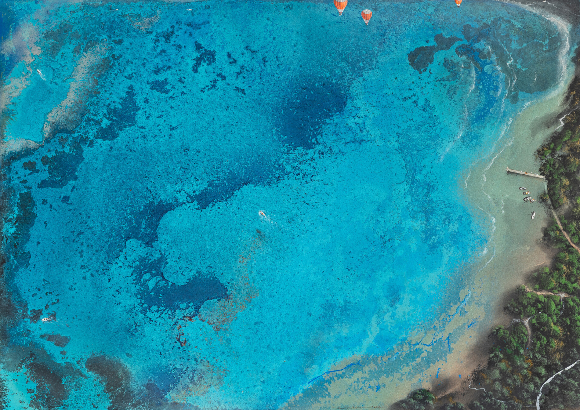 Nei lavori di Andrea Giovannini la tecnica e la percezione si intrecciano in modo naturale. La superficie nasce da strati successivi di colore acquoso e materiali diversi, che creano una base ricca di micro-variazioni. È proprio questa struttura a rendere i suoi quadri mai uguali a se stessi: la luce li modifica continuamente. In certi momenti emergono zone più intense, in altri si aprono passaggi più morbidi; le ombre si spostano, le trasparenze si accendono e si attenuano, dando vita a letture sempre nuove. L’opera non è mai una sola: cambia, si muove, reagisce all’ambiente e allo sguardo.