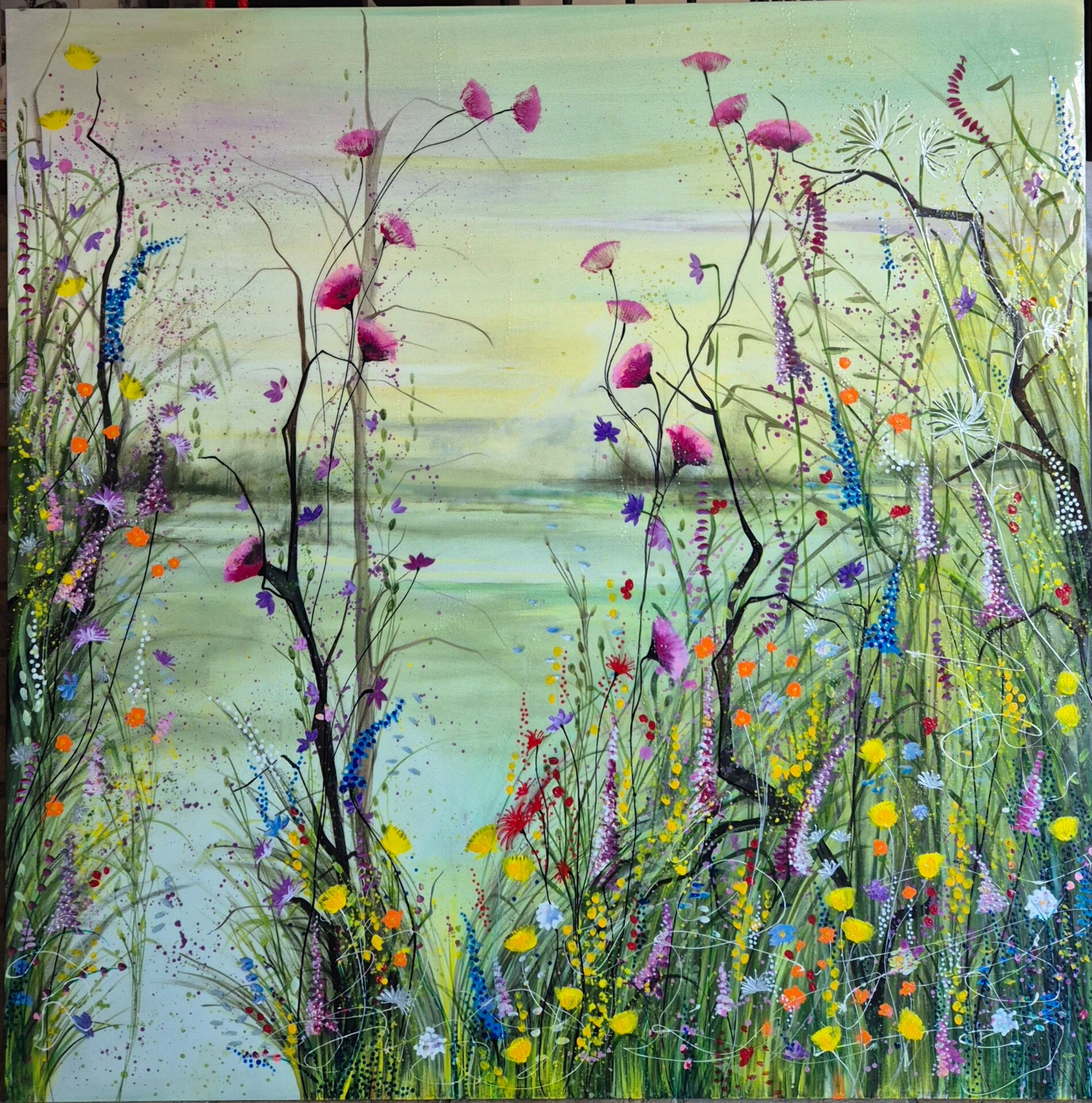 La pittura di Sara Paini si costruisce attraverso tocchi sottili, sovrapposizioni leggere e colori che dialogano con naturale armonia. In questa composizione, il paesaggio si apre come una distesa soffusa, dove rami esili e fioriture vivaci emergono tra verdi vellutati e accenni rosati. I petali sembrano sollevarsi nell’aria, come parole gentili lasciate andare al vento. L’opera suggerisce uno spazio intimo e luminoso, un luogo dove la natura diventa immagine di quiete e di poesia.