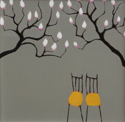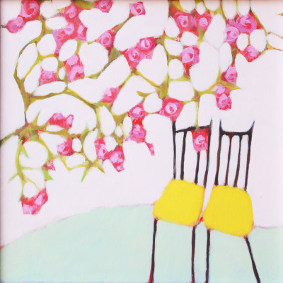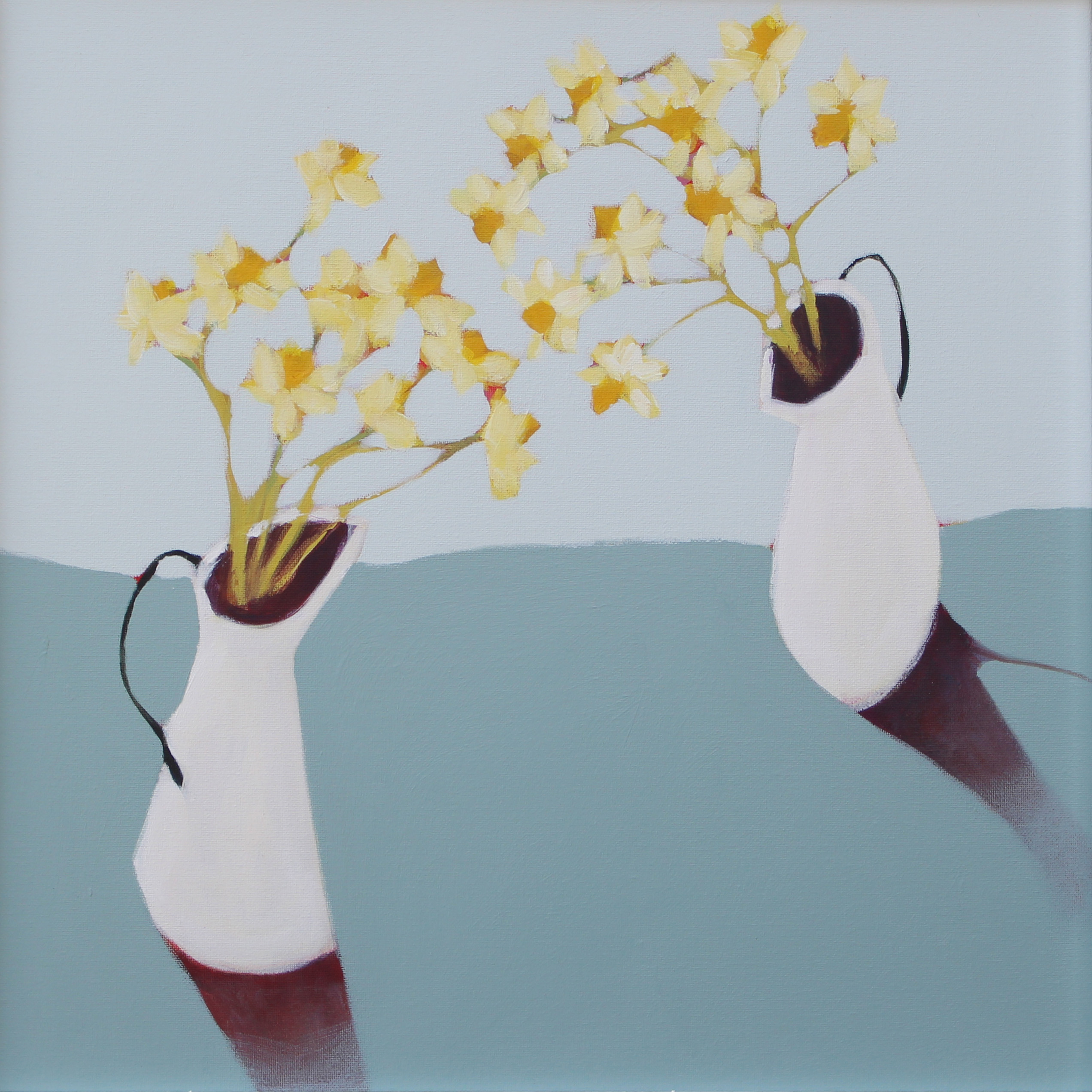 Colori pastello e linee eleganti per questa vivissima natura morta di Beth Richardson: due vasi di fiori - rappresentazione simbolica di due amici, amanti, fratelli? - comunicano tendendo il proprio mazzo di fiori verso l’altro. Lo sfondo azzurro cielo illumina incredibilmente l’atmosfera del dipinto attirando ipnoticamente lo sguardo dello spettatore.