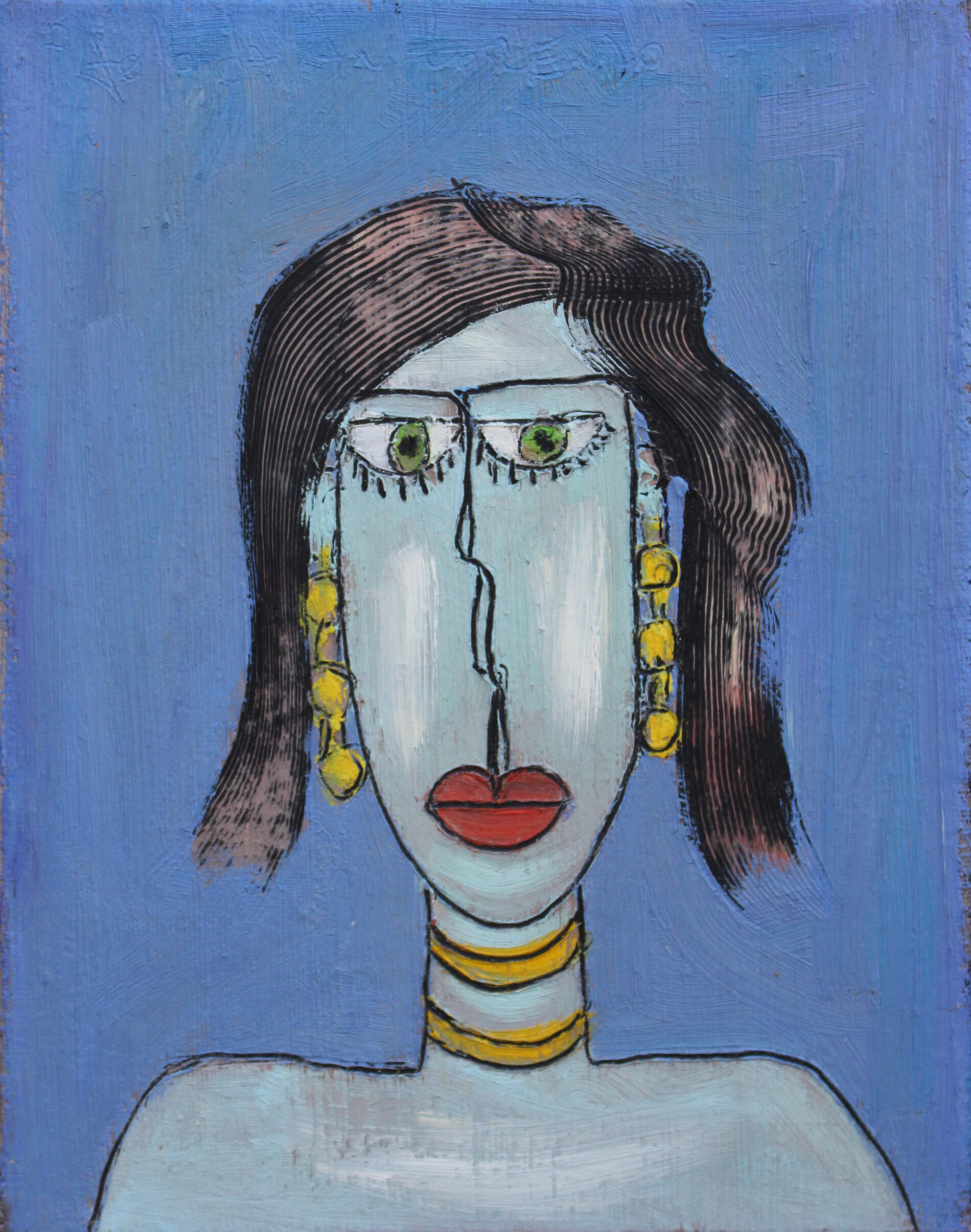gIn questa versione, la “Baronessa” si fa più silenziosa e raccolta. La tavolozza vira verso toni bruni, porpora e grigi fumo, che avvolgono la figura in un’atmosfera ovattata. I tratti sono ridotti all’essenziale, suggeriti più che descritti. L’opera è intima, quasi meditativa, e trasmette una bellezza discreta, interiore.