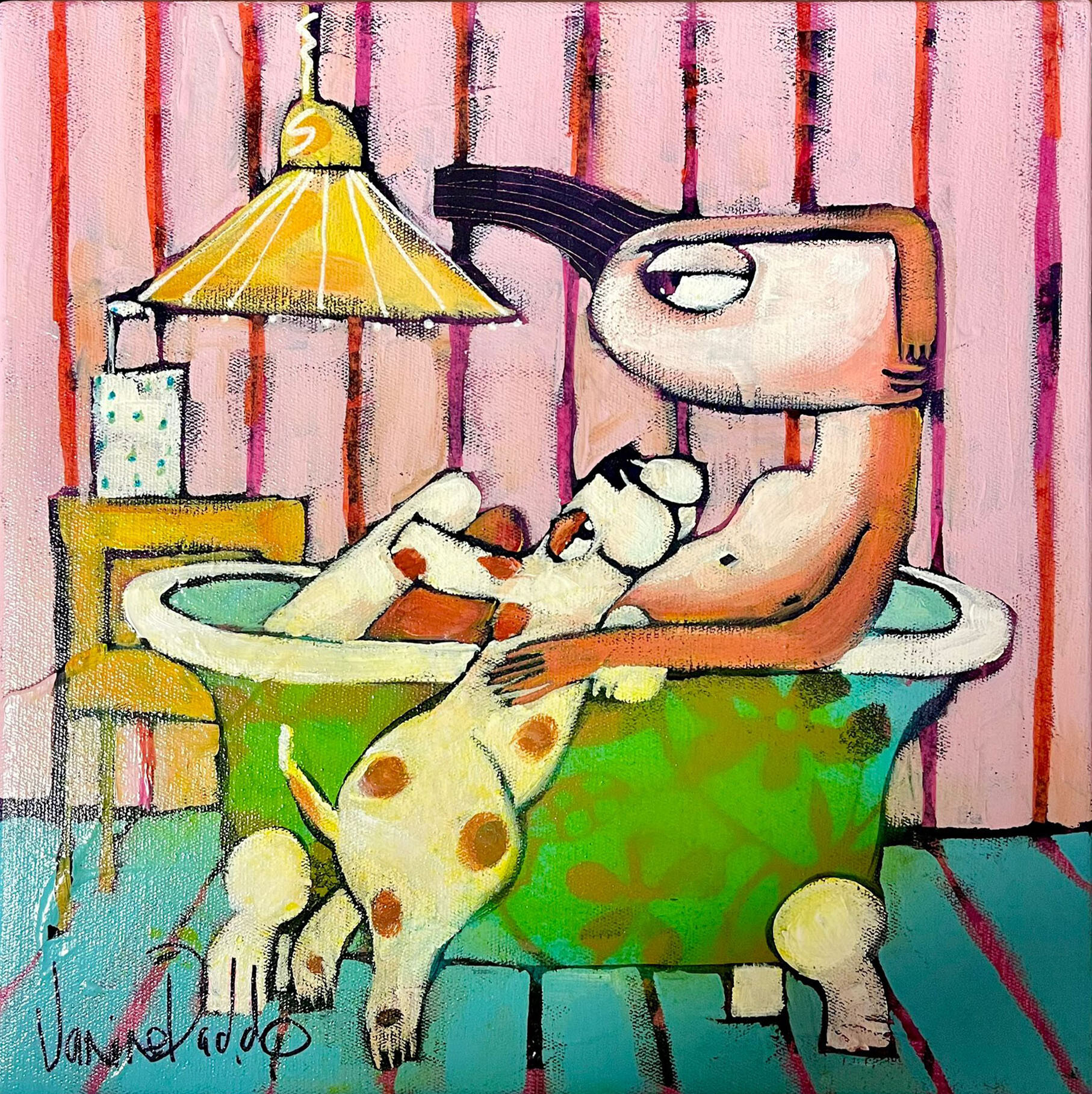 Una richiesta tenera e silenziosa, che trova spazio nel cuore di chi guarda. In Make a room for me, Janine Daddo invita all’apertura, alla cura e all’accoglienza. Una scena delicata e poetica, composta da simboli d’amore e delicate armonie cromatiche.