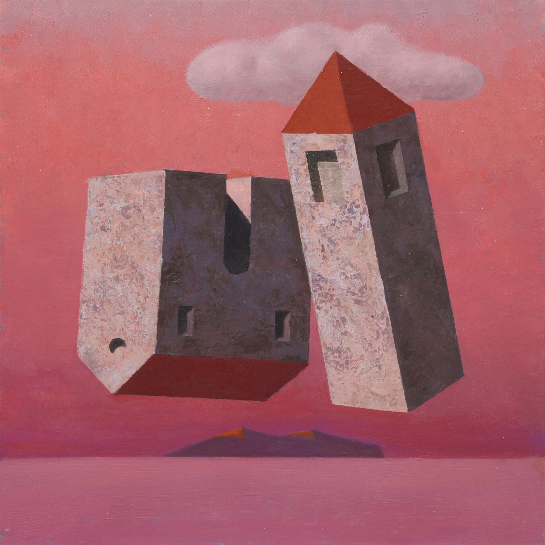 Un viaggio verso un’isola felice, un luogo forse immaginario o forse reale, dove l’anima sembra poter ritrovare pace. L’architettura si eleva come un faro, una meta distante e allo stesso tempo sorprendentemente vicina. La materia pittorica, lavorata a spatola, conferisce alla superficie un carattere quasi scultoreo, facendo della luce un elemento vivo dell’opera.
