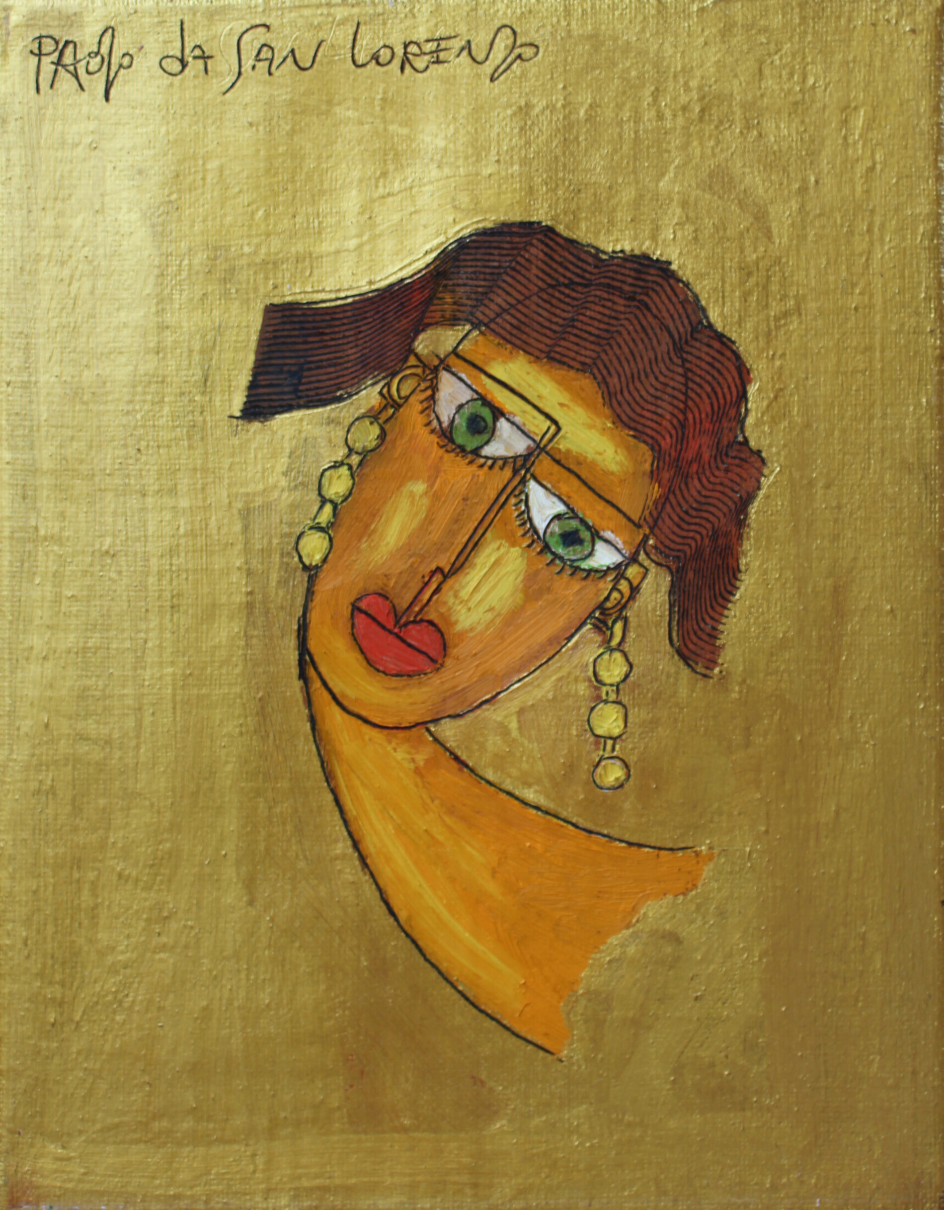 In quest’opera Paolo da San Lorenzo ci regala una versione della amata Baronessa su sfondo oro. La donna nobile da lui amata e che mai ha dimenticato assume in questo dipinto olio su tela una valenza quasi sacrale. La donna è una icona, una dea da venerare.