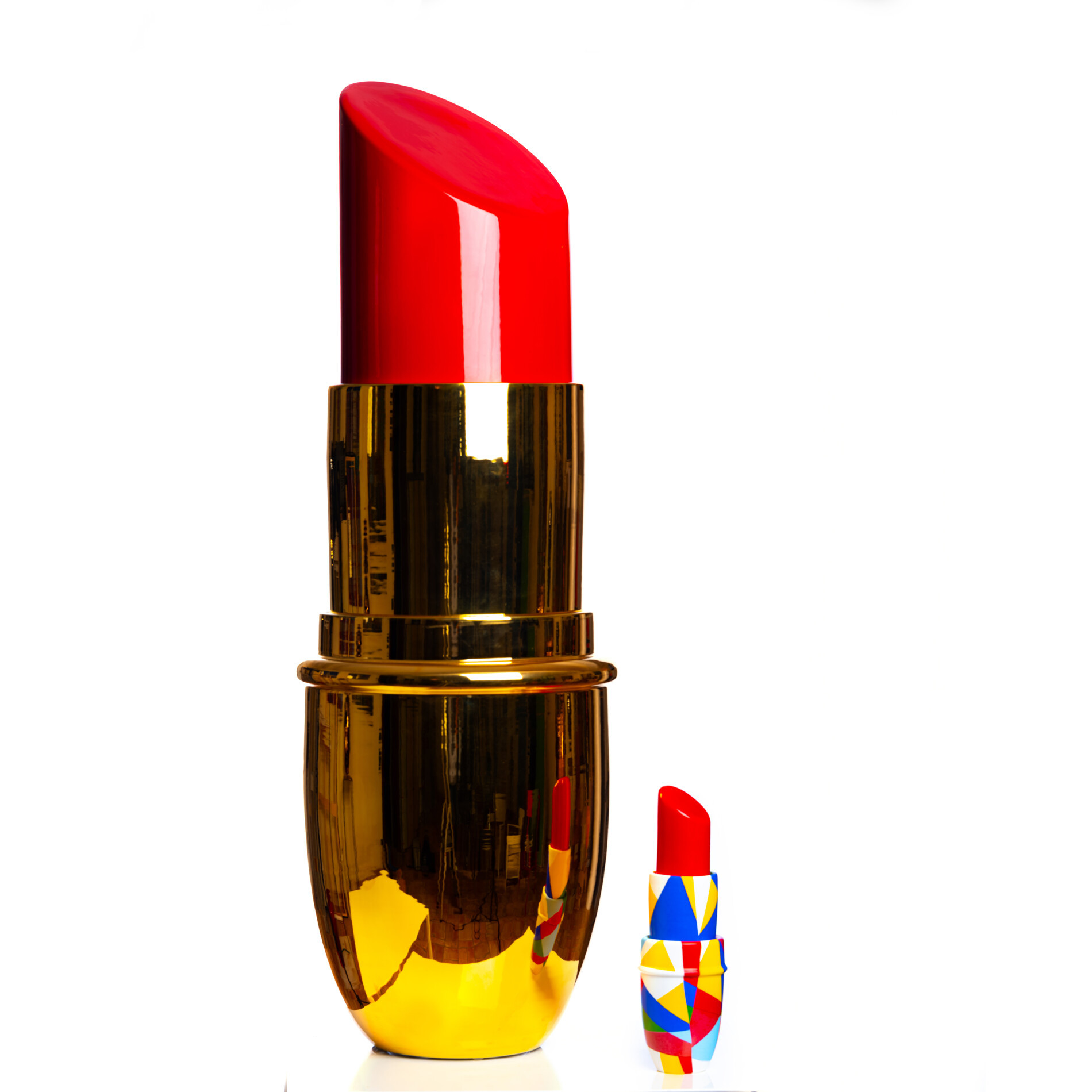 Un rossetto monumentale dorato che unisce glamour e ironia. “Truka Gold” trasforma un oggetto simbolo della femminilità in scultura pop, esaltando la brillantezza della ceramica e la tensione tra scala e significato.
