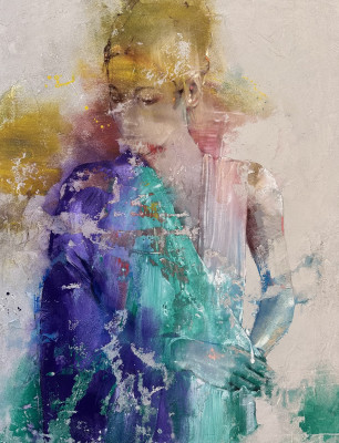 Secondo l’antica tradizione, il velo di Maya non nasconde semplicemente il reale, ma lo trasforma in visione: ciò che appare è solo una soglia, una traccia luminosa di qualcosa di più profondo. In questa opera, la protagonista abita proprio quel confine sottile - dove presenza e mistero si sfiorano, senza mai esaurirsi l’uno nell’altro.
