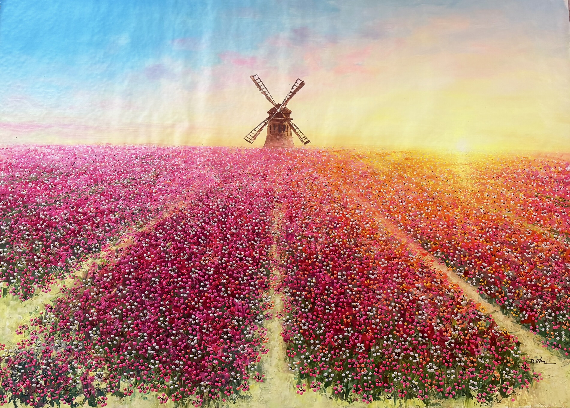 L’arte di Je Shen si caratterizza per una pittura lenta e meditativa, costruita attraverso la ripetizione minuziosa del segno che rende la superficie vibrante di luce. I suoi paesaggi, sospesi tra visione reale e dimensione poetica, invitano a un viaggio interiore intimo e contemplativo.