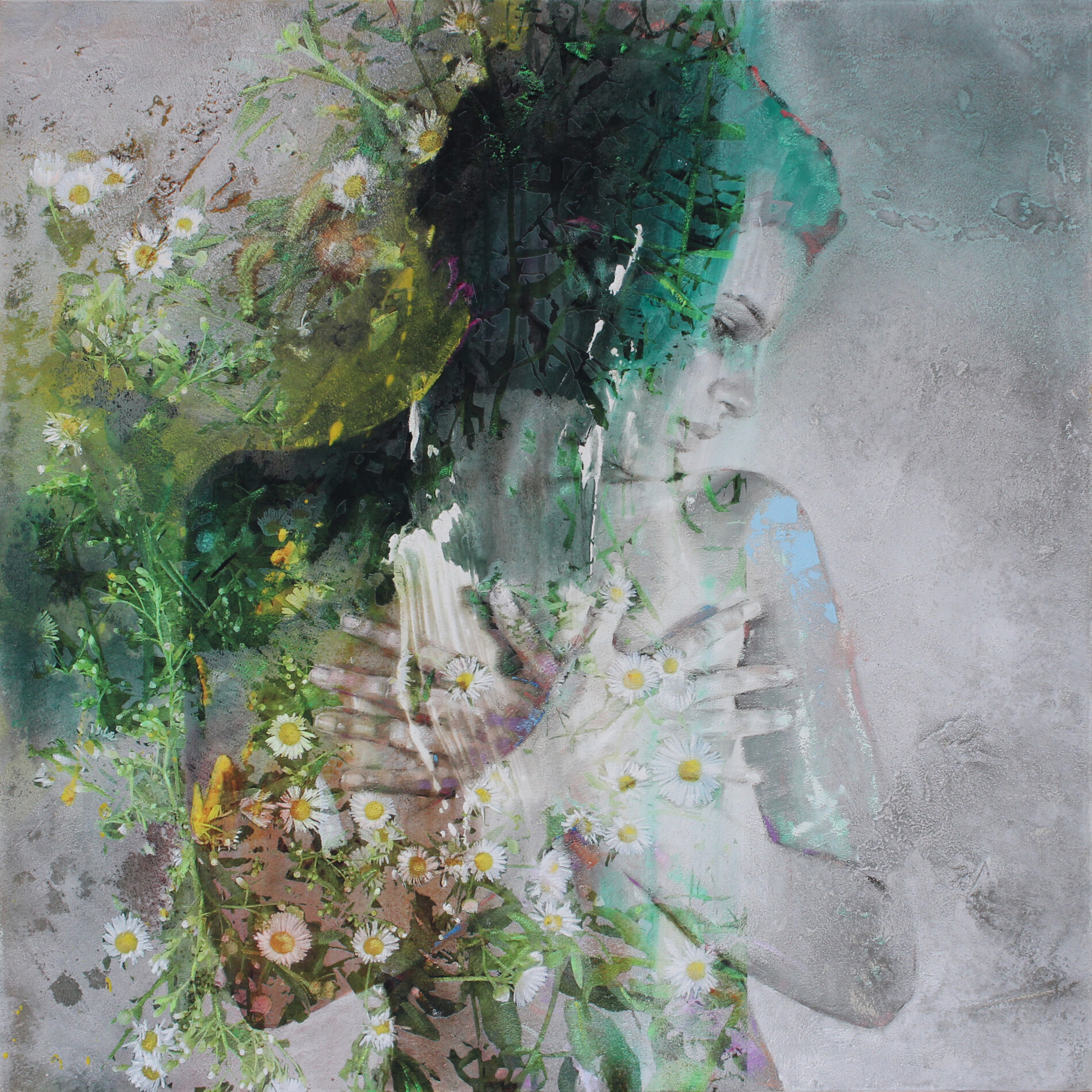 Un’esplosione visiva di emozioni si fonde in “Gemnes 22-125”, dove tratti realistici e gesti pittorici astratti si combinano. I colori sfumano tra verde, nero e tocchi dorati, creando un’opera elegante e moderna, perfetta per spazi dal gusto sofisticato.