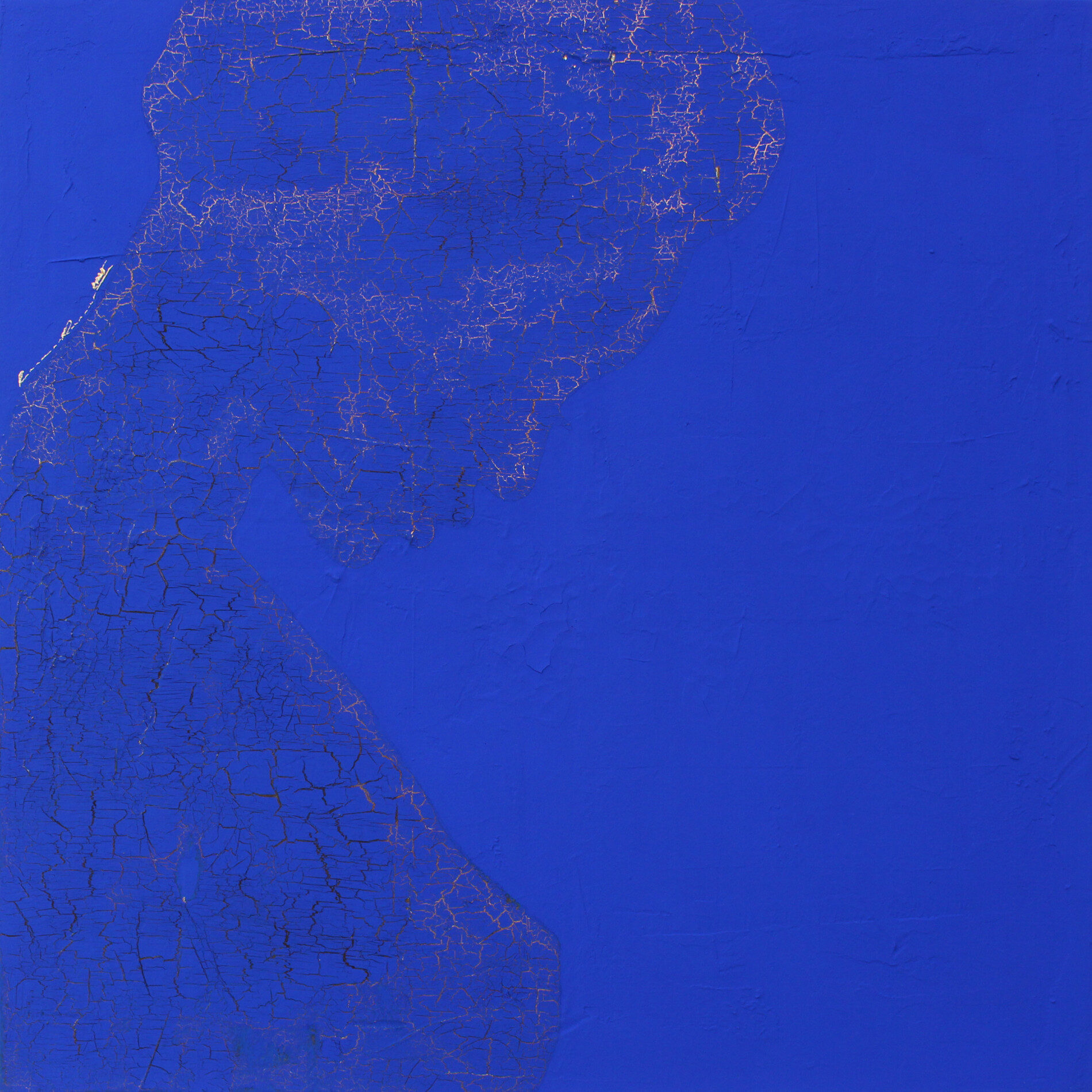 In quest'opera Ramona Russu riduce la figura alla sua pura impronta emotiva. Sullo sfondo blu intenso, il volto e il corpo appaiono solo attraverso una sottile rete di crepe dorate, come una presenza che emerge dall'interno del materiale. La figura è inclinata in un gesto tranquillo, quasi meditativo, che permette alla luce, piuttosto che alle linee, di definirne i contorni.
