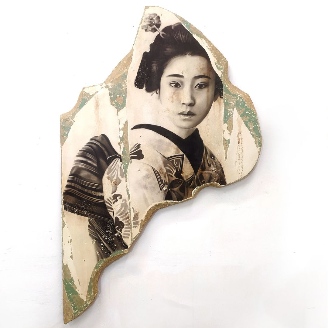 Nell'opera di Toni Alfano, l'antico e il moderno si fondono in un'unica visione. L'artista esplora il tema dell'antico Giappone con una freschezza originale e una straordinaria finezza tecnica. Le sue "Sonatine" si caratterizzano per un sincretismo affascinante, che sorprende lo spettatore. Qui, una pittura scultorea si mescola a un frammento di affresco, come se fosse strappato da un muro. Questo contrasto tra l'estetica occidentale e il ritratto di una geisha giapponese, con i suoi costumi tradizionali colorati, crea una sintesi degli opposti, invitando lo spettatore ad aprirsi ad una visione più ampia.