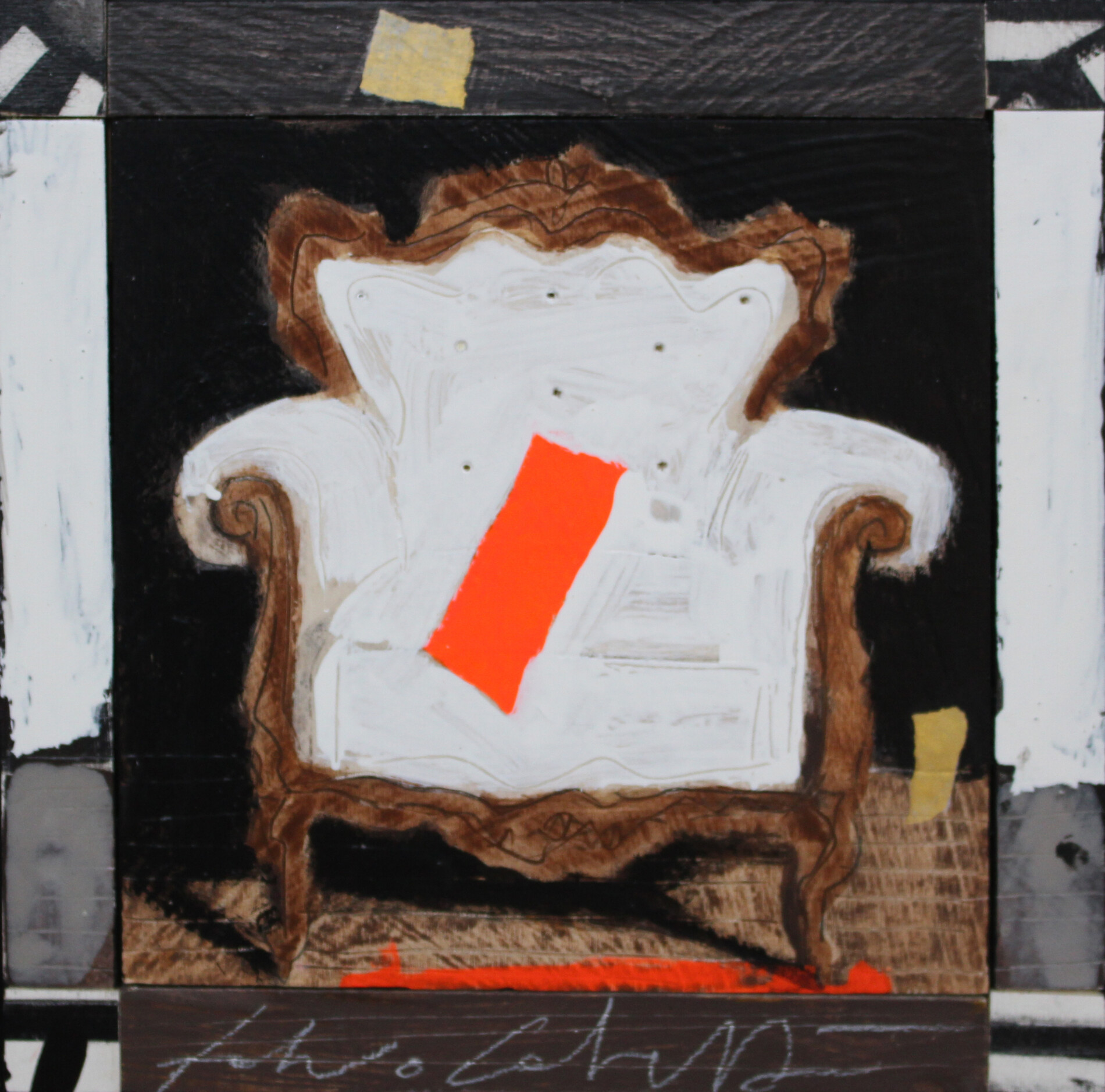 Quest'opera di Fabio Calvetti, artista italiano noto per le sue atmosfere intime e malinconiche, rappresenta una poltrona bianca come elemento centrale della composizione. La scena è avvolta da toni caldi e avvolgenti, enfatizzati da una pennellata arancione che attraversa lo sfondo, creando un contrasto visivo che aggiunge profondità e movimento all'opera.