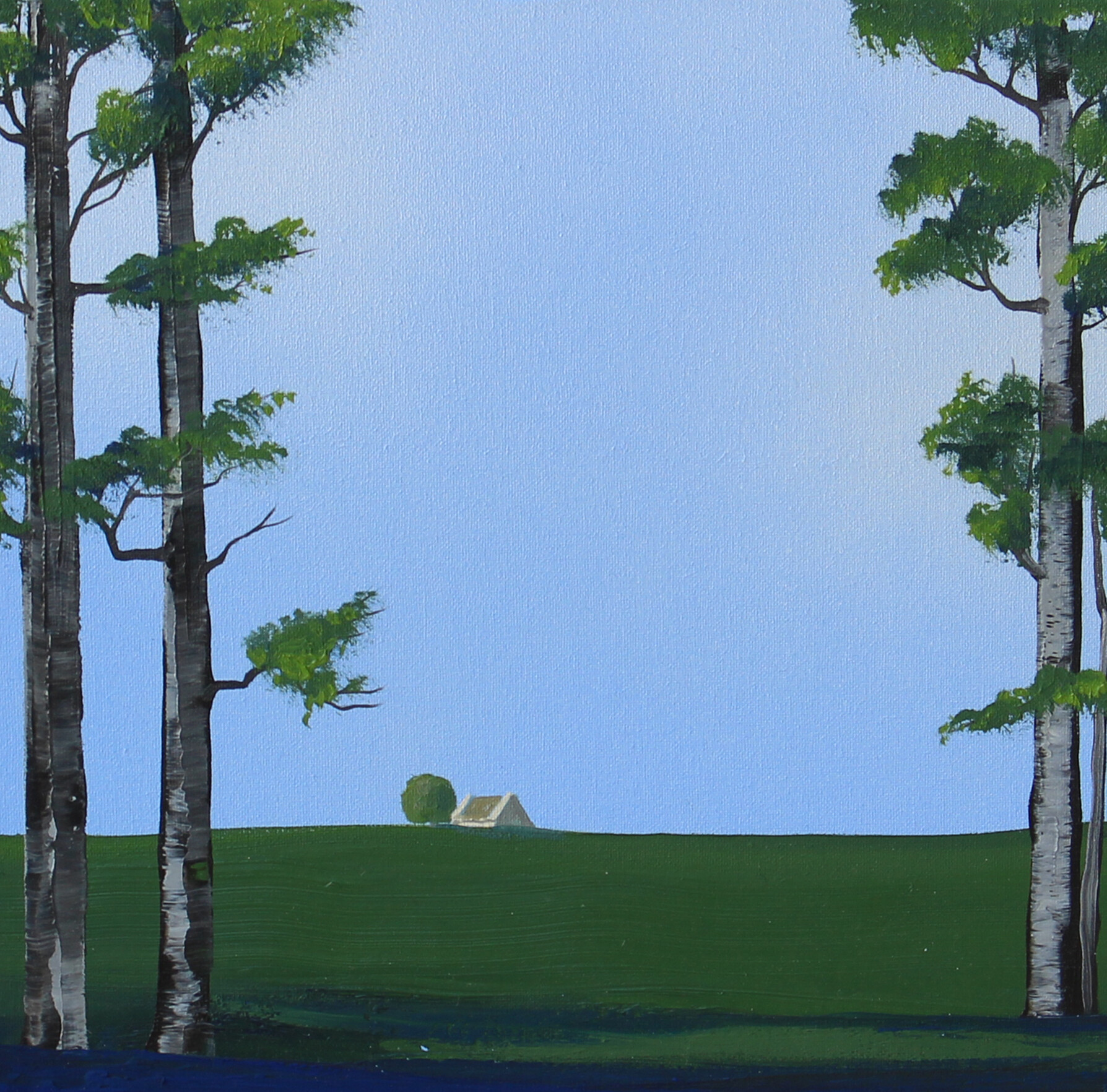 Questo dipinto in piccolo formato cattura la vivacità dei colori primaverili con alberi verdi rigogliosi e una collina morbida, simbolo della bellezza naturale della Lessinia. Il cielo azzurro si fonde delicatamente con il paesaggio circostante, mentre il casolare solitario aggiunge un tocco di calore alla composizione. Il formato ridotto accentua la tranquillità e la serenità del paesaggio.
