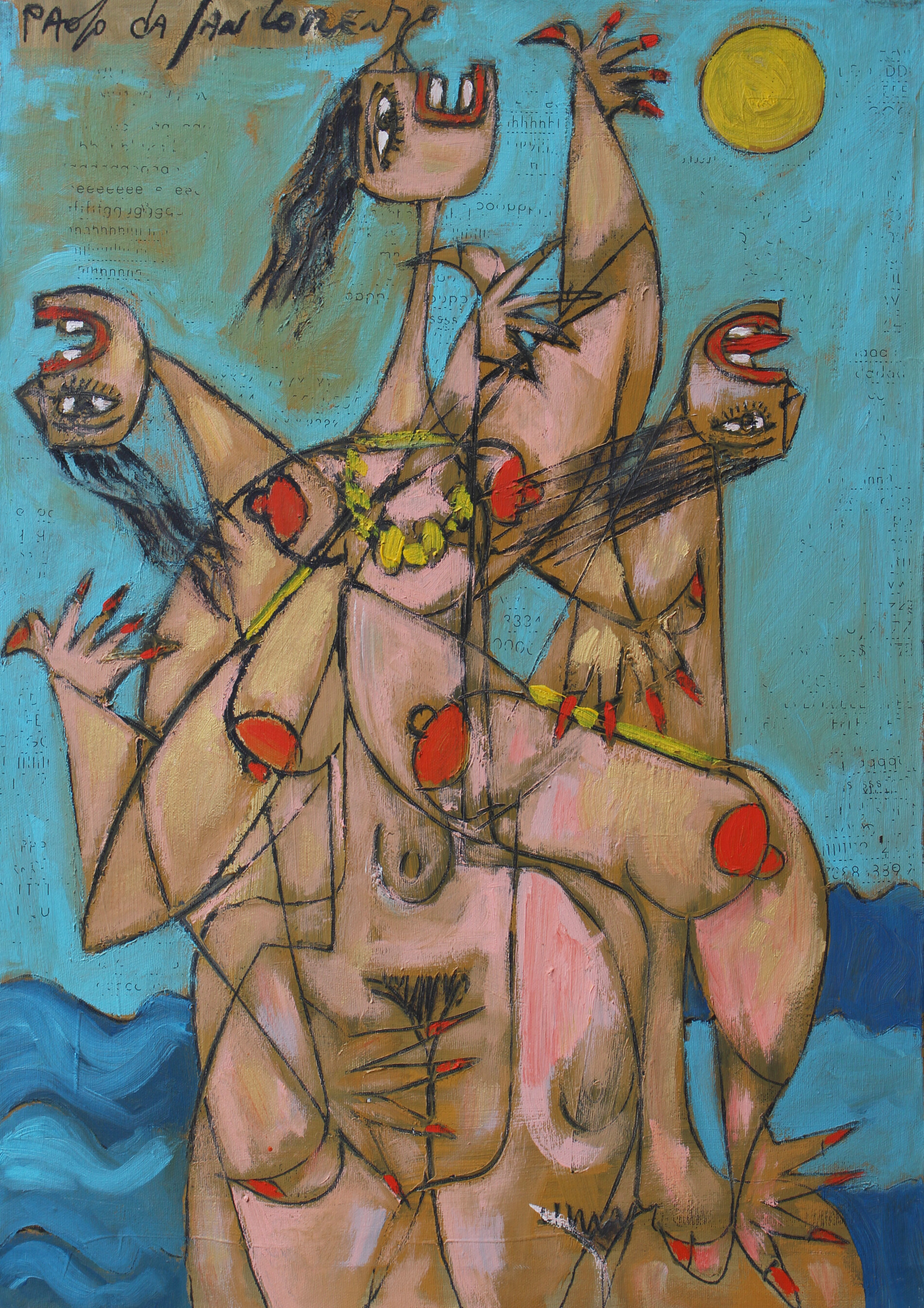 La pittura di Paolo da San Lorenzo nasce da un dialogo diretto e fisico con la superficie. Il colore non si limita a riempire lo spazio, ma viene costruito, inciso, attraversato, trasformando la tela in un campo vivo di energia. Le campiture cromatiche, intense e luminose, si sovrappongono in una stratificazione dinamica, mentre il segno grafico interviene come una scrittura spontanea che struttura, collega e anima le forme.