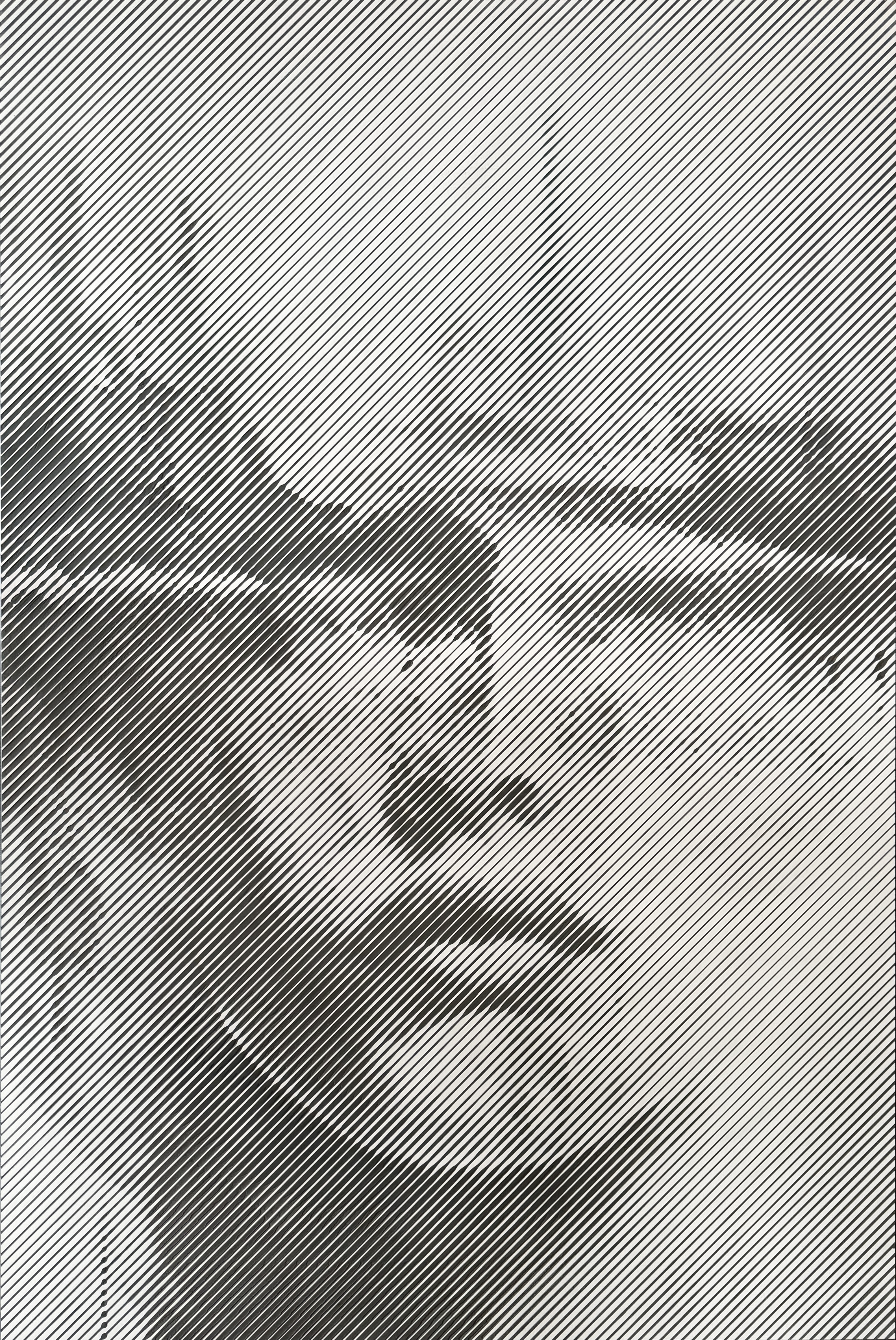 In questo enigmatico dipinto su legno, Enrico Pazzoni fonde volto umano e paesaggio, creando un’illusione percettiva dove l’anima e l’ambiente si confondono. Le linee della città attraversano lo sguardo assorto di un giovane, suggerendo un’immersione profonda nella realtà urbana e interiore. “Dive” è un tuffo nella mente, nel caos dell’esistenza moderna, e nella ricerca di senso in un mondo in costante trasformazione.
