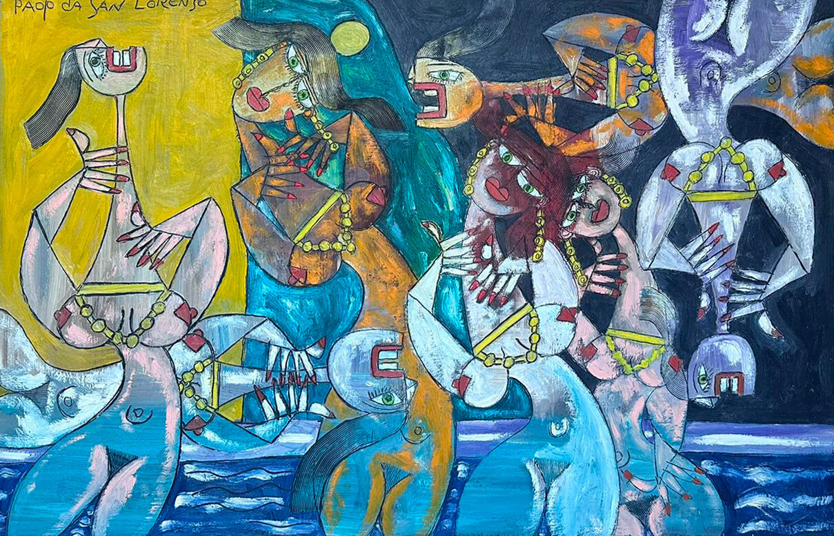 Paolo da San Lorenzo, allievo di Pablo Picasso, ha assimilato le lezioni del maestro, rielaborandole in un linguaggio personale. Dall’influenza di Picasso, in particolare del periodo cubista, Paolo eredita la scomposizione delle forme e la frammentazione dello spazio, elementi che utilizza per esplorare l’interazione tra figura e ambiente.Tuttavia, si distacca dall’approccio più strutturale del maestro, preferendo un’interpretazione più fluida e lirica. Le sue opere si caratterizzano per un uso evocativo del colore e per composizioni che spesso evocano un senso di leggerezza e introspezione, mescolando il rigore formale cubista con una poetica più intima e contemplativa.