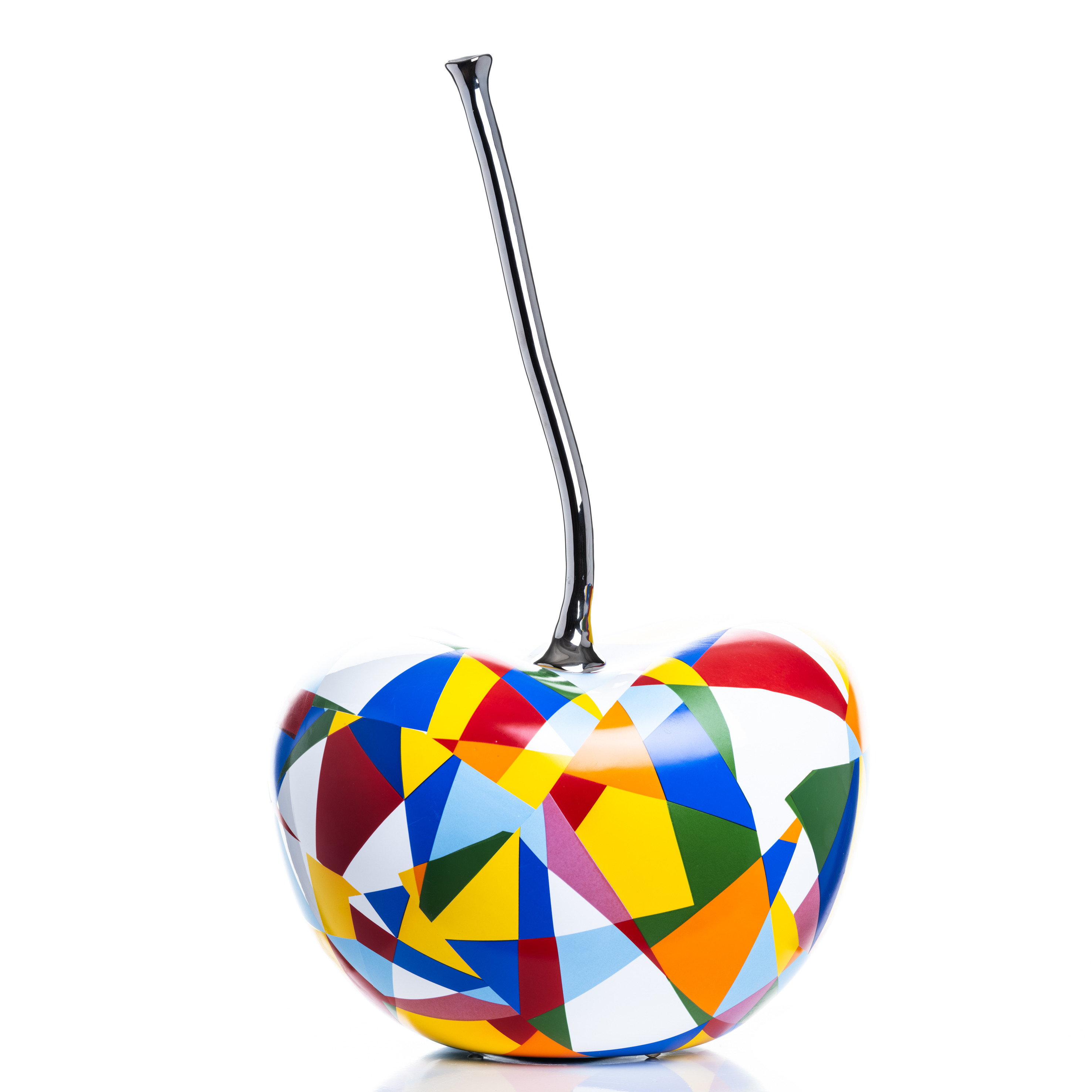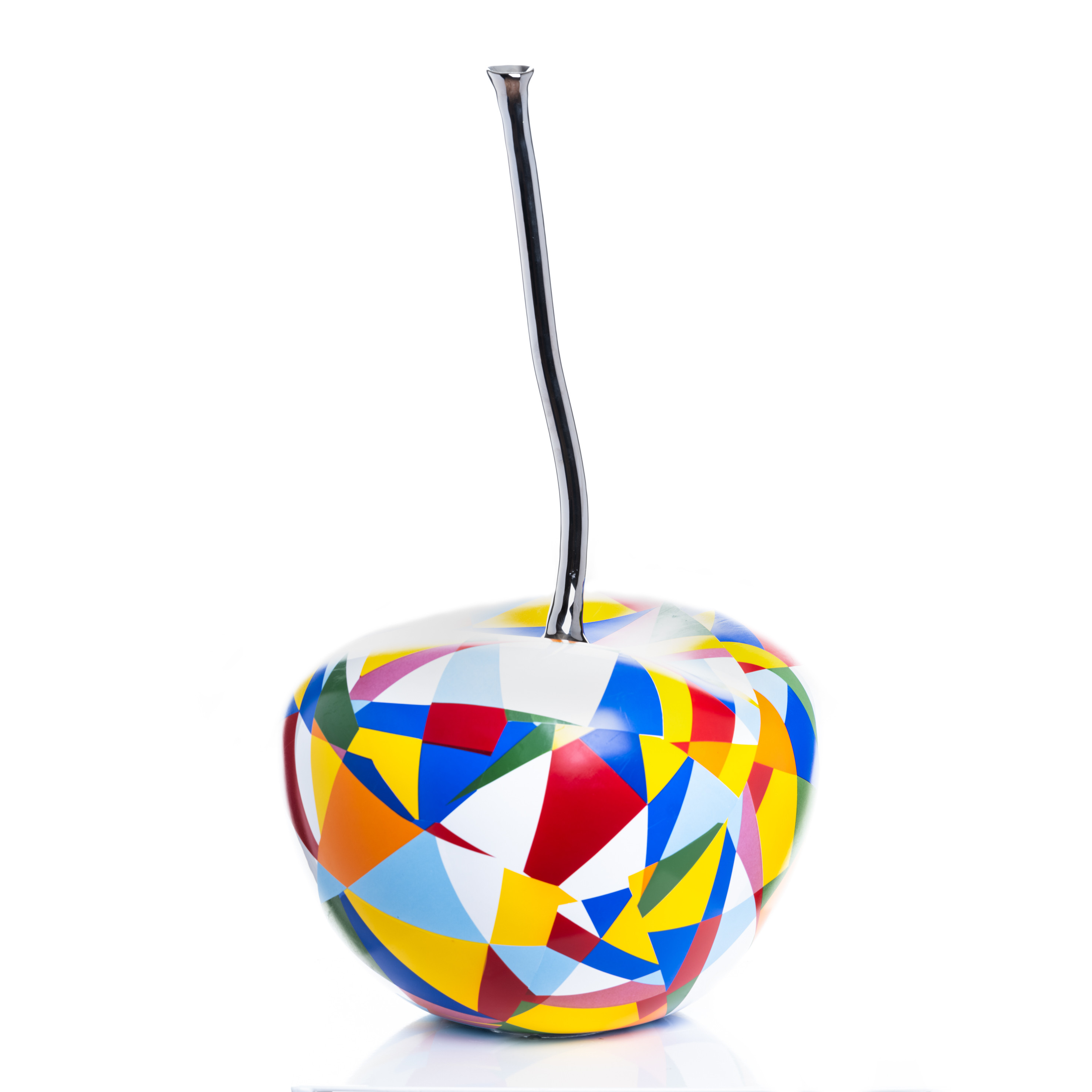 La ciliegia di Giorgio Laveri, rivestita di smalti policromi ispirati al costume di Arlecchino, è un’esplosione di vitalità pop. Cherry Arlecchino trasforma il frutto in un simbolo monumentale di gioia, desiderio e gioco, dove natura e cultura si intrecciano in un linguaggio ironico e festoso.
