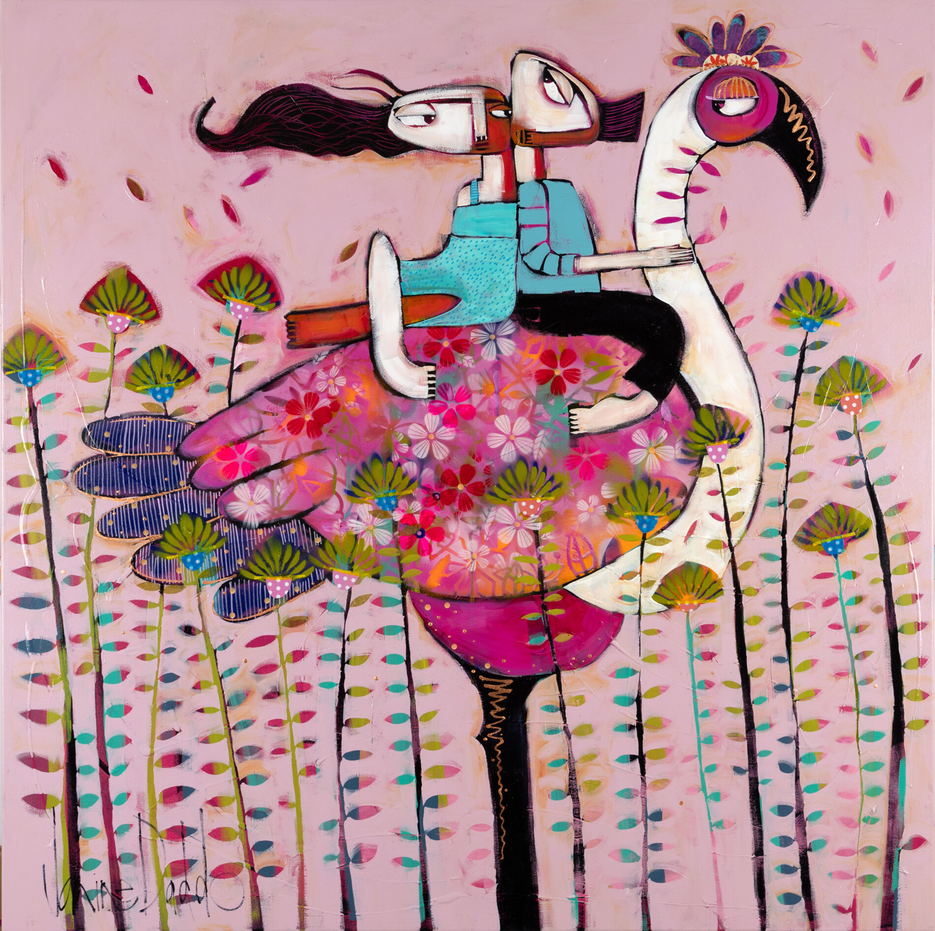 In quest’opera Janine Daddo trasforma la scena in un viaggio di due innamorati che,a bordo di un mezzo alquanto stravagante, partono insieme alla volta di un mondo fatto di fiori, colori e fantasia. L’opera racconta con ironia e leggerezza la bellezza del condividere il percorso.