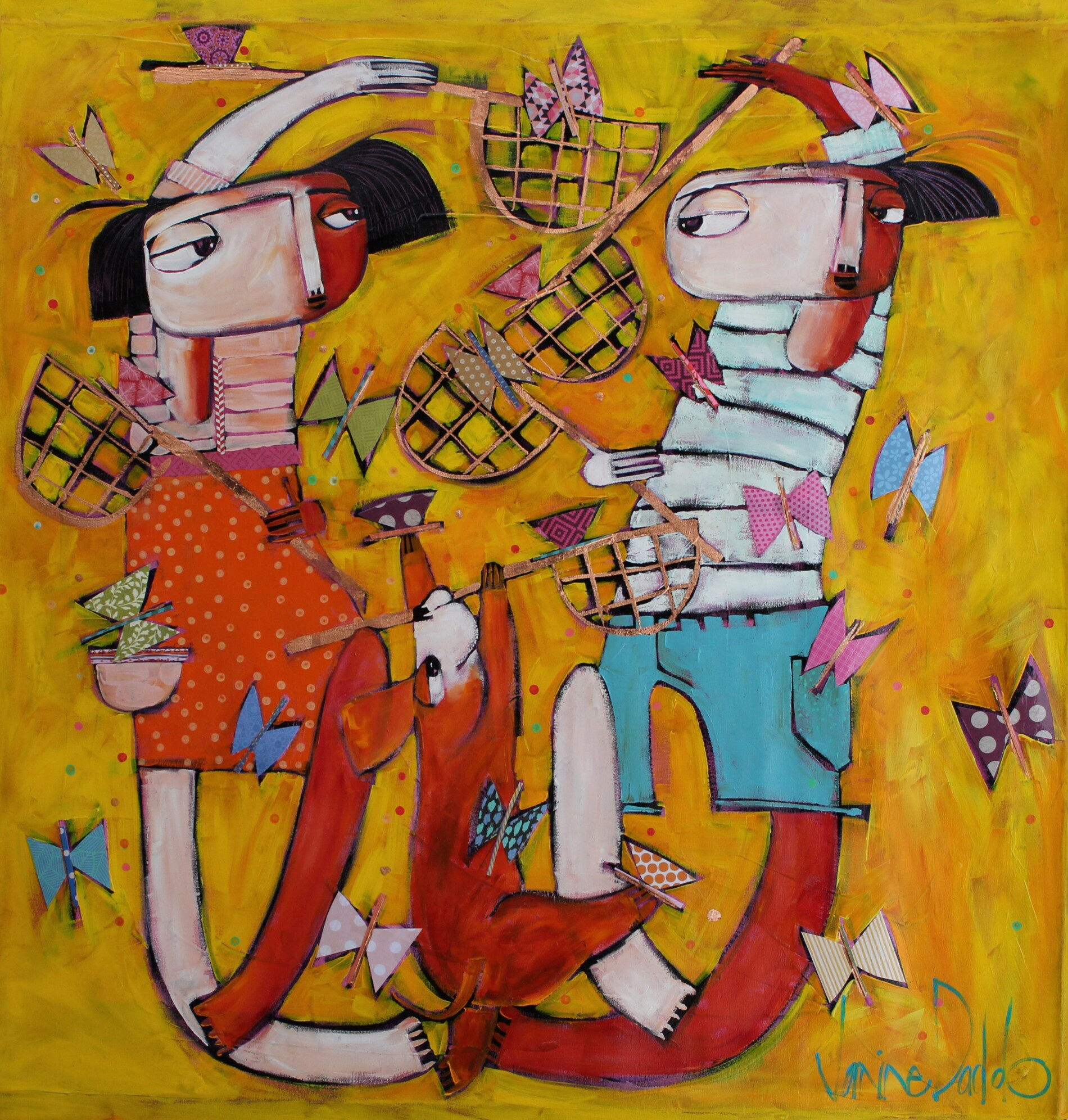 Un attimo sospeso tra sguardi e silenzi: due figure si ritrovano nell’oro di un paesaggio sognante, seguite da un cagnolino e circondate da farfalle colorate. L’inizio di un amore diventa qui eterno.