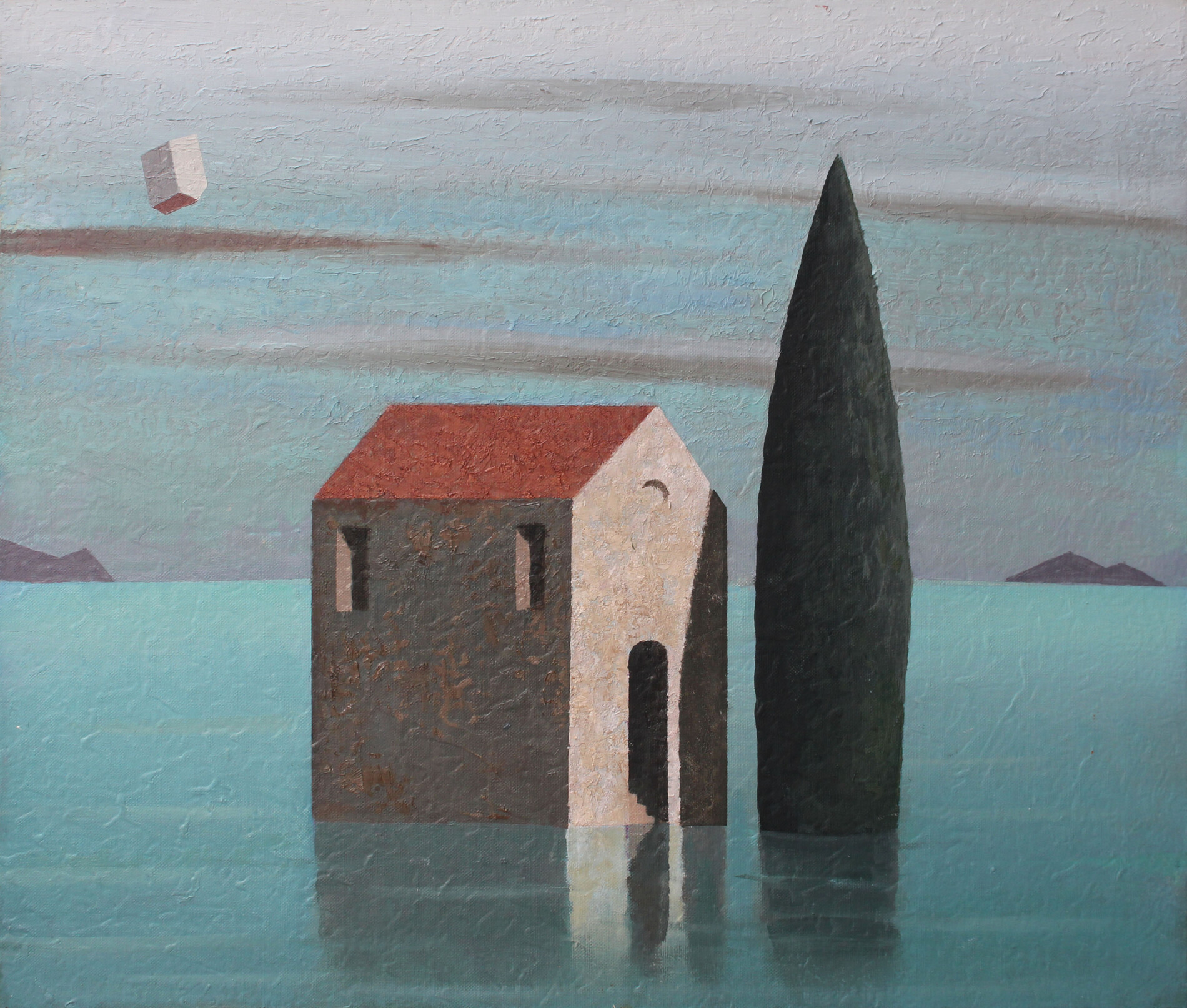 L’acqua sale e il mondo si riflette in una danza liquida che distorce e trasfigura la realtà. In questo piccolo formato, Brandes concentra tutta la forza della sua poetica: un equilibrio misurato tra forma e materia, tra la solidità delle architetture e il movimento incessante dell’acqua.