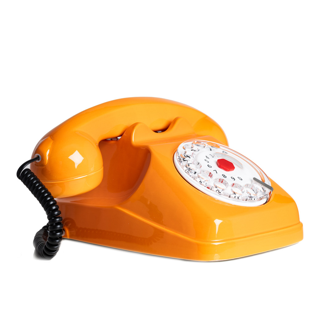 Con un’estetica audace e brillante, il telefono arancione di Laveri , già iconico, trasporta il design retrò nella contemporaneità. La ceramica smaltata cattura la luce con eleganza, mentre la composizione gioca sul filo tra memoria e provocazione pop.