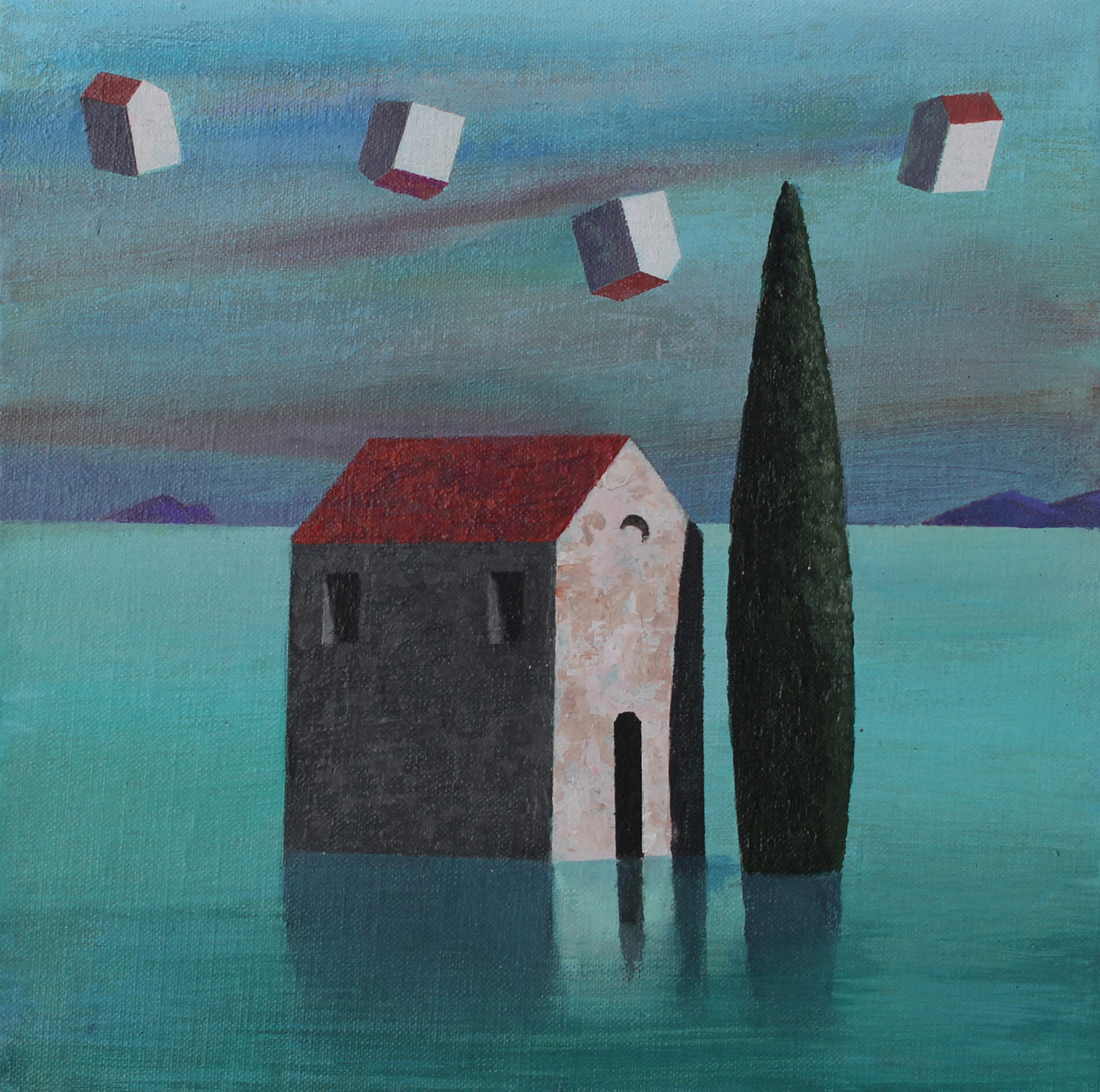 In questo piccolo olio su tela Brandes costruisce la scena con materia ruvida e colori misurati, lasciando che la luce sfiori le superfici senza mai rivelarle del tutto. Il risultato è un’immagine che vive di attese e di piccole apparizioni, un luogo dove qualcosa sta per accadere e di cui lo spettatore coglie soltanto il delicato preludio.