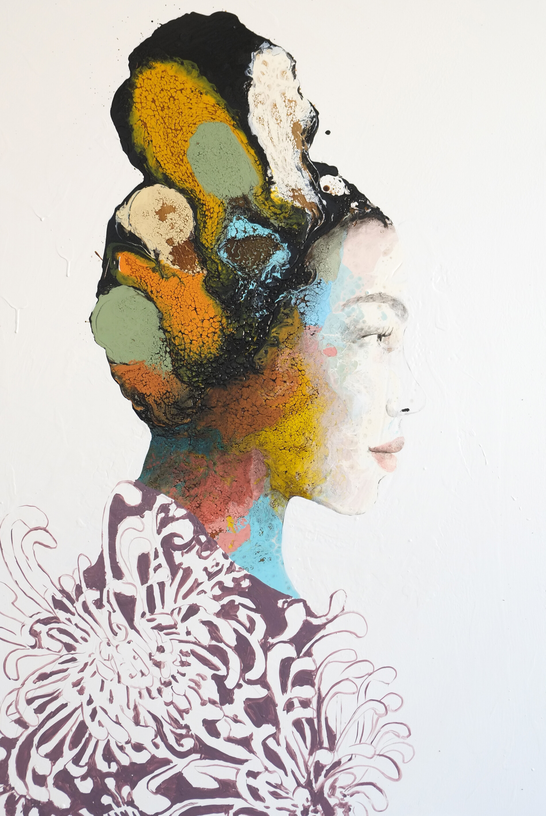 In questo grande dipinto in tecnica mista su tela Casetti trasforma il soggetto in una mappa dell’animo umano, dove ogni tonalità rivela una sfaccettatura, ogni movimento del colore suggerisce una possibilità. È un dipinto che non si limita a ritrarre: svela ciò che ci anima.